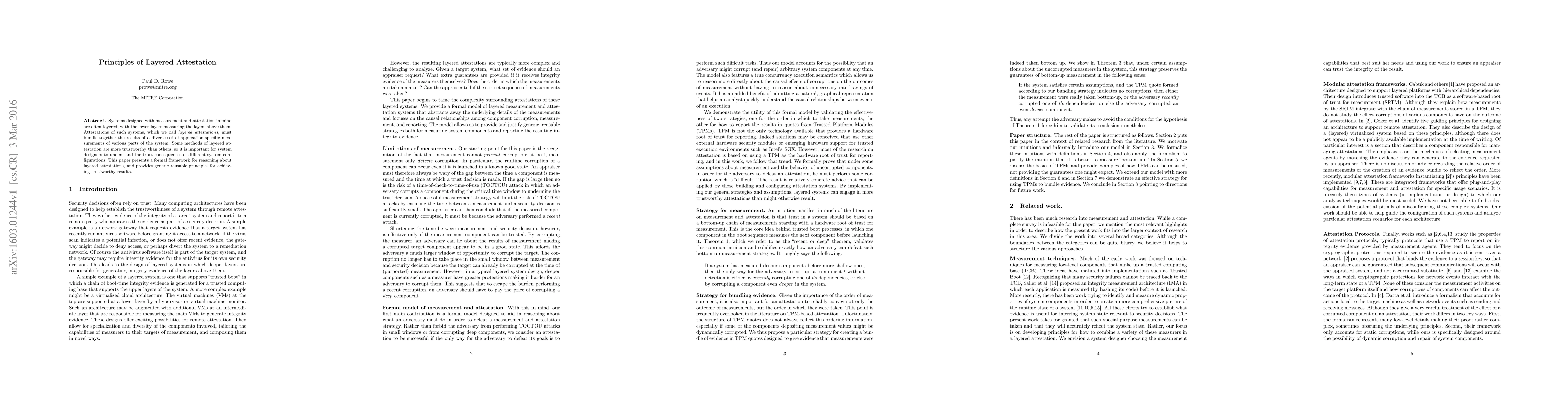 Systems designed with measurement and attestation in mind are often layered, with the lower layers measuring the layers above them. Attestations of such systems, which we call layered attestations, must bundle together the results of a diverse set of application-specific measurements of various parts of the system. Some methods of layered attestation are more trustworthy than others, so it is important for system designers to understand the trust consequences of different system configurations. This paper presents a formal framework for reasoning about layered attestations, and provides generic reusable principles for achieving trustworthy results.
