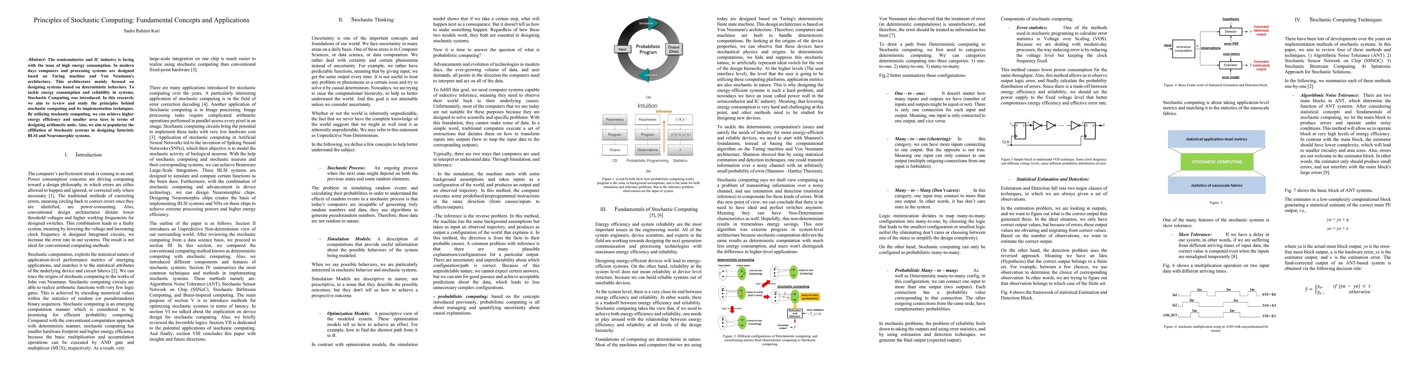 The semiconductor and IC industry is facing the issue of high energy consumption. In modern days computers and processing systems are designed based on the Turing machine and Von Neumann's architecture. This architecture mainly focused on designing systems based on deterministic behaviors. To tackle energy consumption and reliability in systems, Stochastic Computing was introduced. In this research, we aim to review and study the principles behind stochastic computing and its implementation techniques. By utilizing stochastic computing, we can achieve higher energy efficiency and smaller area sizes in terms of designing arithmetic units. Also, we aim to popularize the affiliation of Stochastic systems in designing futuristic BLSI and Neuromorphic systems.