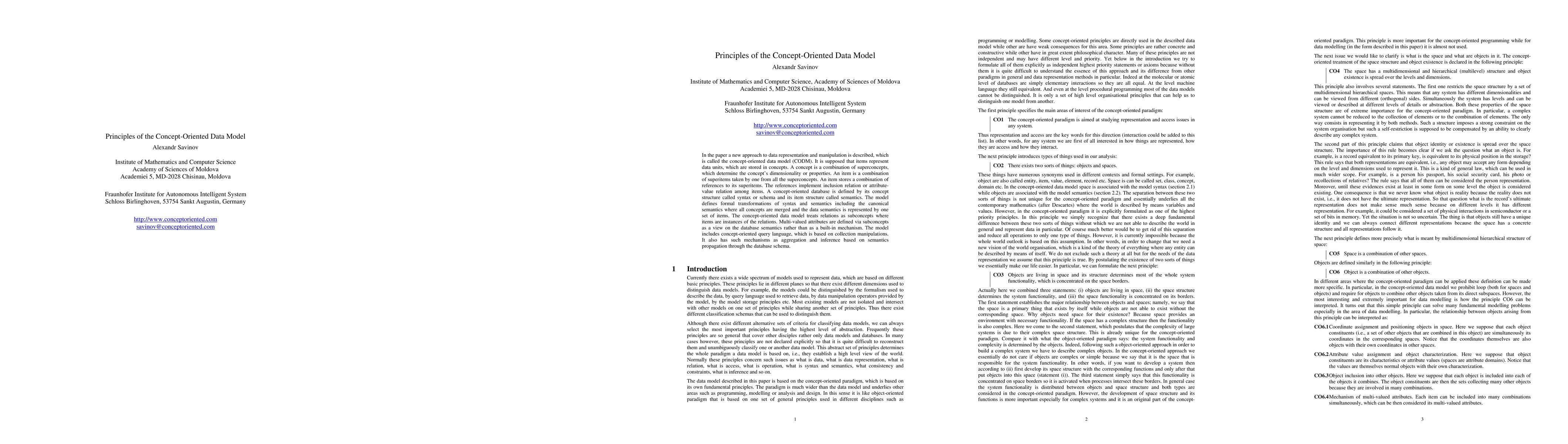 The paper introduces the concept-oriented data model (CODM), which represents data units as items stored in concepts, combining superconcepts to determine dimensionality. It includes a query language based on collection manipulations and supports mechanisms like aggregation and inference through schema propagation.