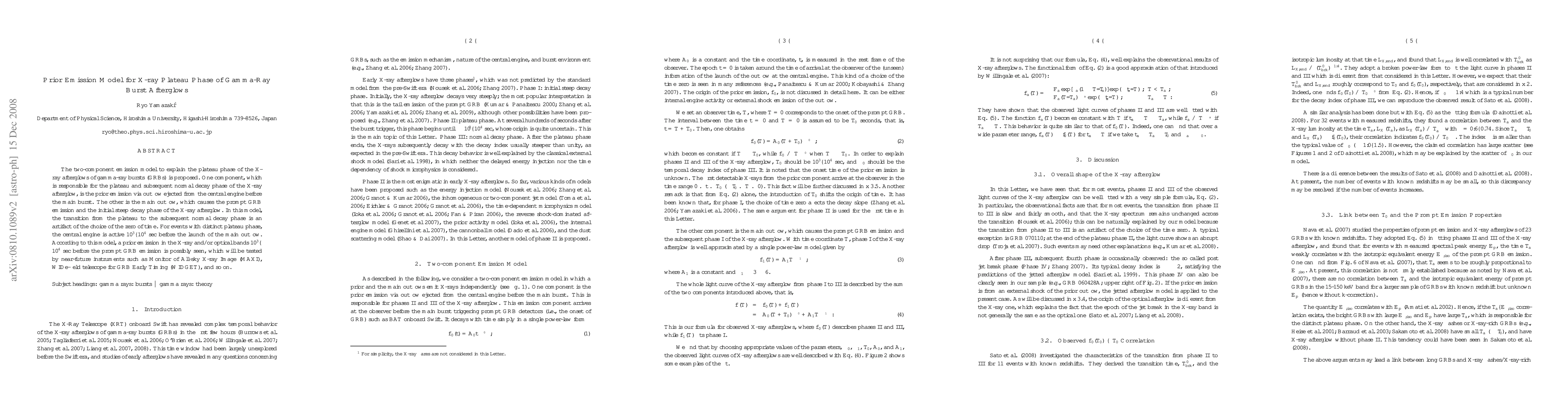 This paper proposes a two-component emission model to explain the X-ray plateau phase of gamma-ray burst afterglows, attributing it to prior emission from outflow ejected before the main burst. The model suggests that the central engine remains active for several thousand seconds before the main outflow, potentially observable in X-ray and optical bands by future instruments.