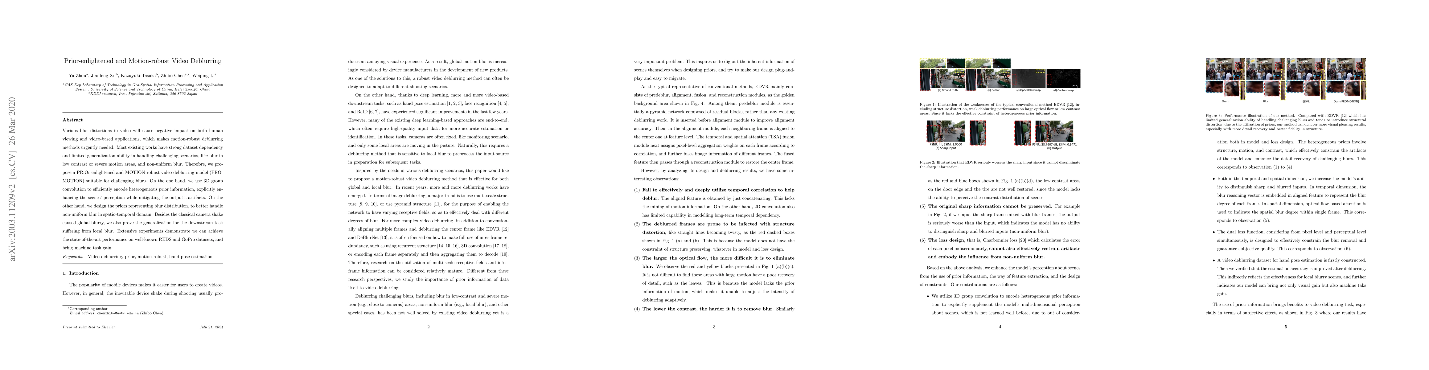 The paper proposes PROMOTION, a prior-enlightened and motion-robust video deblurring model that uses 3D group convolution and blur distribution priors to handle non-uniform and severe motion-induced blurs, achieving state-of-the-art performance on REDS and GoPro datasets.