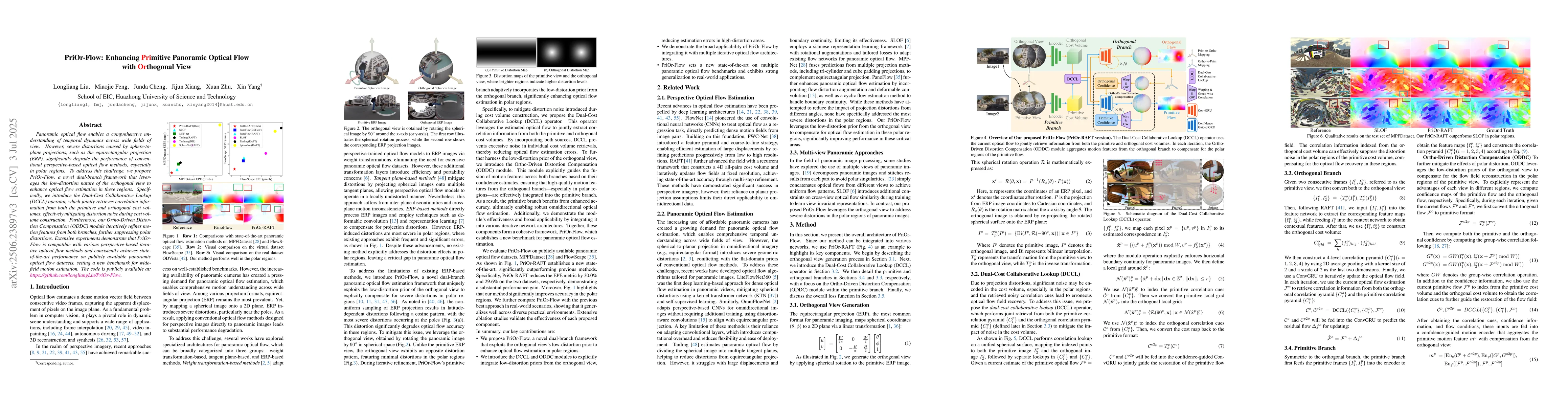 Panoramic optical flow enables a comprehensive understanding of temporal dynamics across wide fields of view. However, severe distortions caused by sphere-to-plane projections, such as the equirectangular projection (ERP), significantly degrade the performance of conventional perspective-based optical flow methods, especially in polar regions. To address this challenge, we propose PriOr-Flow, a novel dual-branch framework that leverages the low-distortion nature of the orthogonal view to enhance optical flow estimation in these regions. Specifically, we introduce the Dual-Cost Collaborative Lookup (DCCL) operator, which jointly retrieves correlation information from both the primitive and orthogonal cost volumes, effectively mitigating distortion noise during cost volume construction. Furthermore, our Ortho-Driven Distortion Compensation (ODDC) module iteratively refines motion features from both branches, further suppressing polar distortions. Extensive experiments demonstrate that PriOr-Flow is compatible with various perspective-based iterative optical flow methods and consistently achieves state-of-the-art performance on publicly available panoramic optical flow datasets, setting a new benchmark for wide-field motion estimation. The code is publicly available at: https://github.com/longliangLiu/PriOr-Flow.