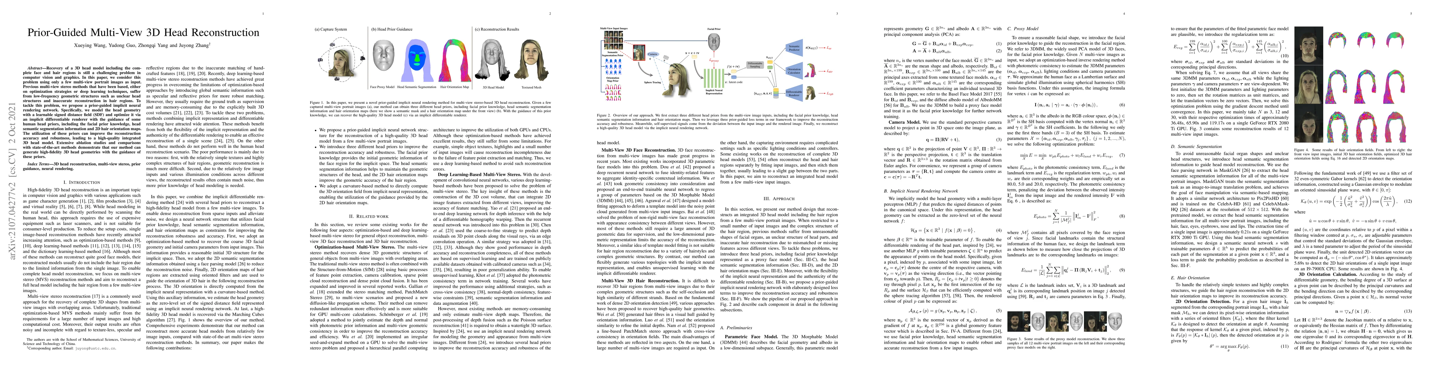 This paper proposes a prior-guided implicit neural rendering network to reconstruct a high-fidelity 3D head model from multi-view images, utilizing facial priors, head segmentation, and hair orientation maps to enhance accuracy and robustness. The method outperforms existing techniques in generating detailed and accurate 3D head geometries.