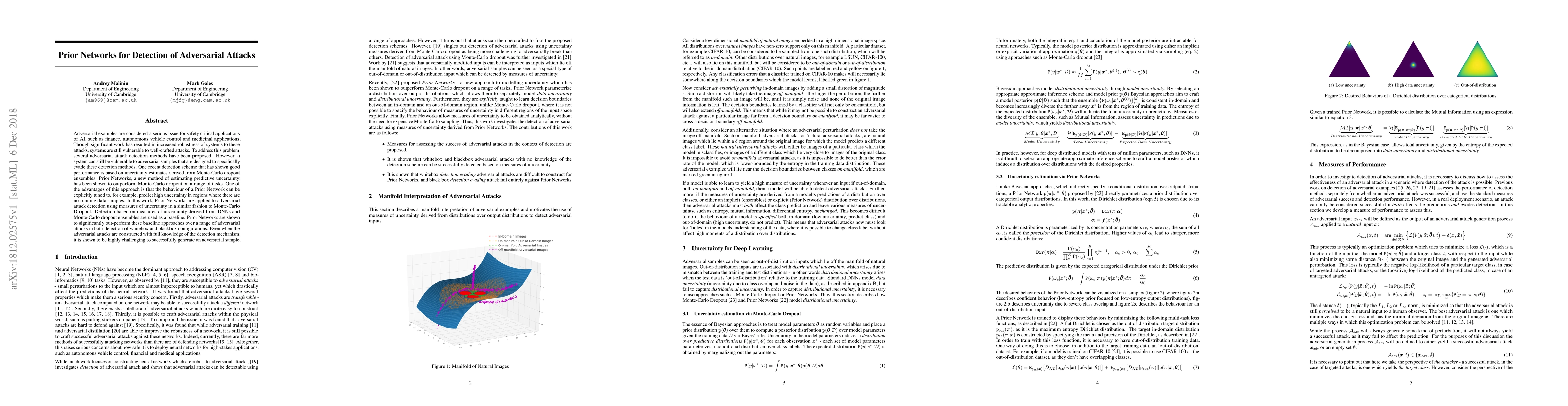 A new method called Prior Networks is shown to significantly outperform existing detection methods for adversarial attacks in AI systems, even when attackers have full knowledge of the detection mechanism.