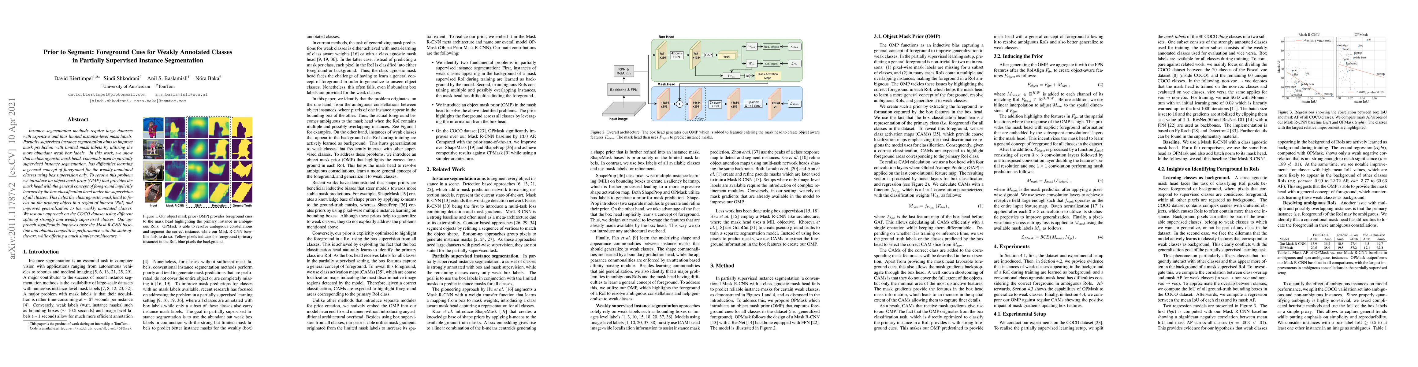 Instance segmentation methods require large datasets with expensive and thus limited instance-level mask labels. Partially supervised instance segmentation aims to improve mask prediction with limited mask labels by utilizing the more abundant weak box labels. In this work, we show that a class agnostic mask head, commonly used in partially supervised instance segmentation, has difficulties learning a general concept of foreground for the weakly annotated classes using box supervision only. To resolve this problem we introduce an object mask prior (OMP) that provides the mask head with the general concept of foreground implicitly learned by the box classification head under the supervision of all classes. This helps the class agnostic mask head to focus on the primary object in a region of interest (RoI) and improves generalization to the weakly annotated classes. We test our approach on the COCO dataset using different splits of strongly and weakly supervised classes. Our approach significantly improves over the Mask R-CNN baseline and obtains competitive performance with the state-of-the-art, while offering a much simpler architecture.