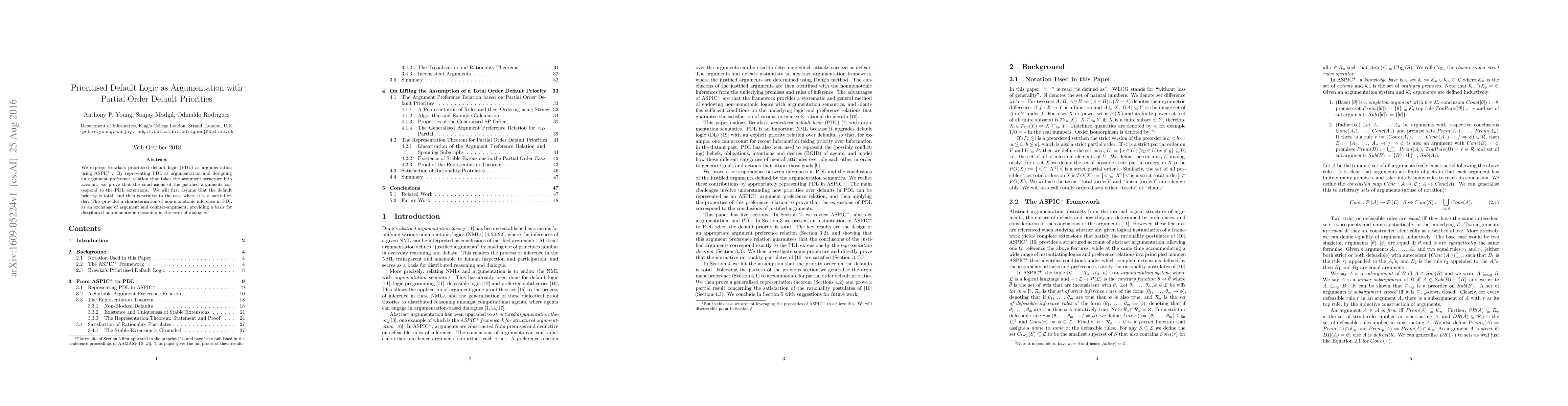 We express Brewka's prioritised default logic (PDL) as argumentation using ASPIC+. By representing PDL as argumentation and designing an argument preference relation that takes the argument structure into account, we prove that the conclusions of the justified arguments correspond to the PDL extensions. We will first assume that the default priority is total, and then generalise to the case where it is a partial order. This provides a characterisation of non-monotonic inference in PDL as an exchange of argument and counter-argument, providing a basis for distributed non-monotonic reasoning in the form of dialogue.