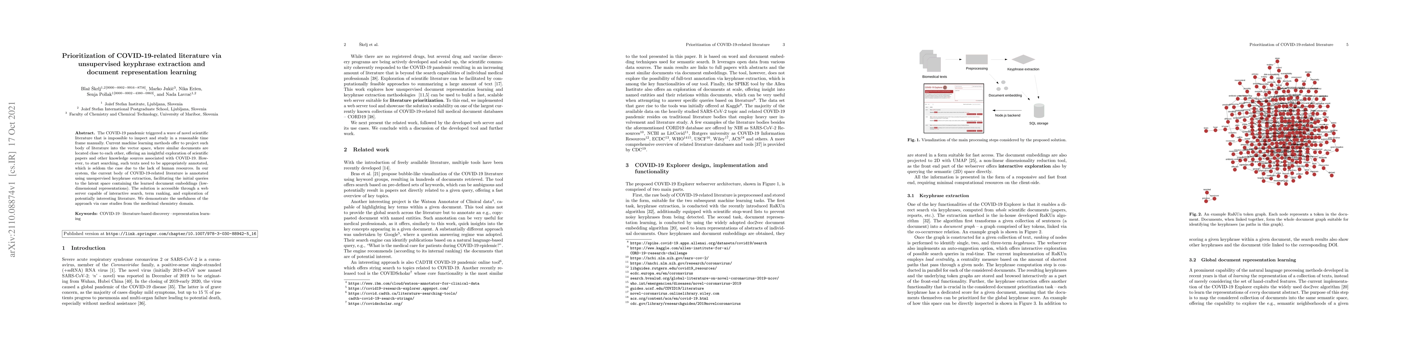 Researchers developed a system to prioritize COVID-19 literature through unsupervised keyphrase extraction, enabling interactive search and exploration of related documents. This approach facilitates the initial queries to the latent space containing learned document embeddings, making it accessible through a web server.