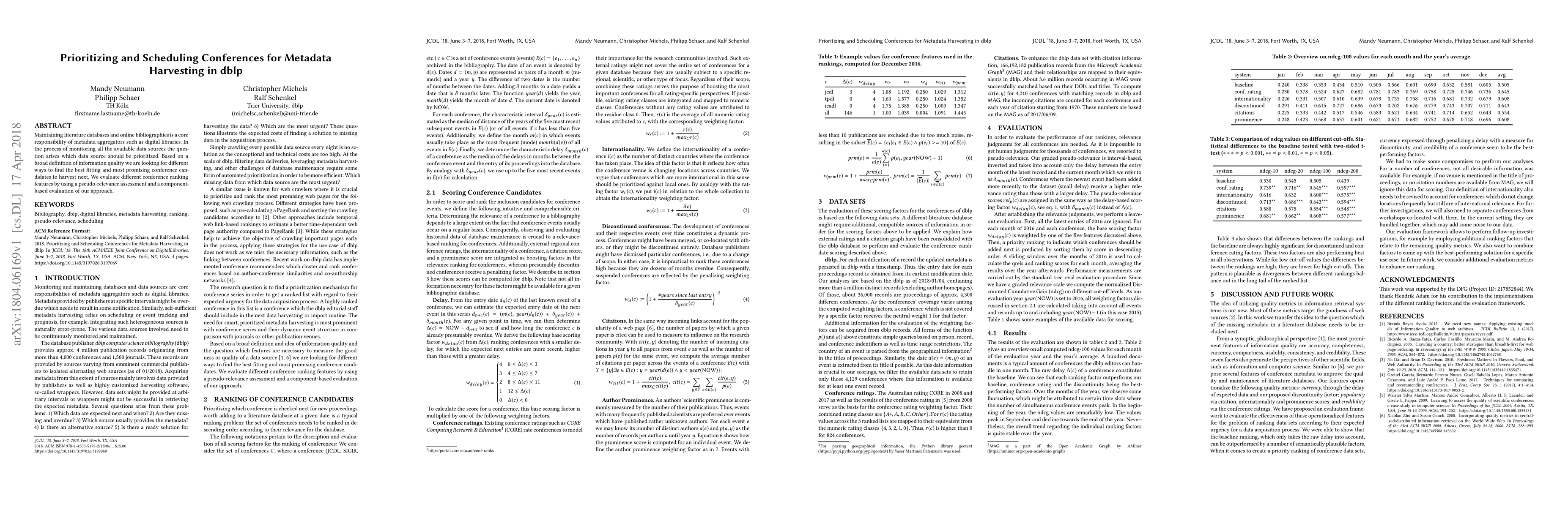 Maintaining literature databases and online bibliographies is a core responsibility of metadata aggregators such as digital libraries. In the process of monitoring all the available data sources the question arises which data source should be prioritized. Based on a broad definition of information quality we are looking for different ways to find the best fitting and most promising conference candidates to harvest next. We evaluate different conference ranking features by using a pseudo-relevance assessment and a component-based evaluation of our approach.