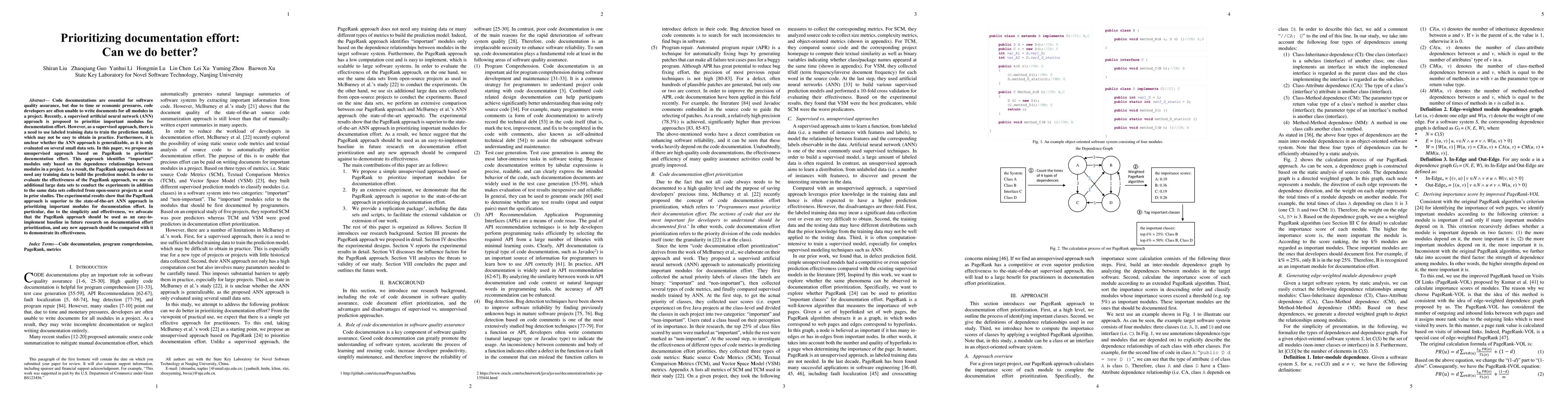 A new unsupervised approach using PageRank outperforms a supervised ANN approach in prioritizing documentation effort for software modules, offering a simpler and effective alternative.