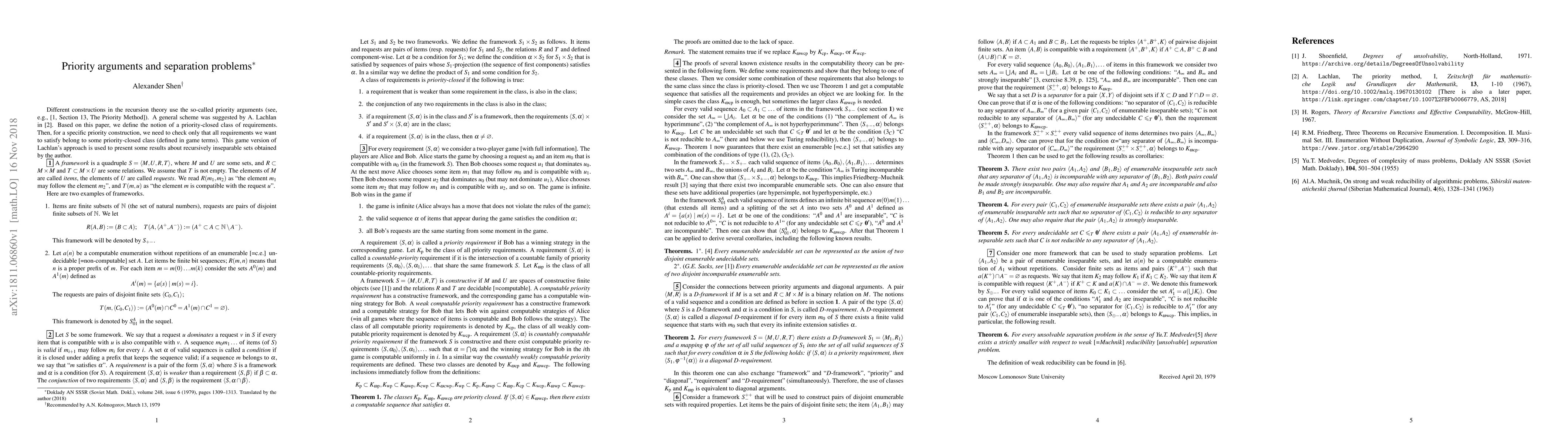 Researchers developed a game theory approach to Lachlan's priority arguments, allowing for efficient verification of requirements in recursively inseparable sets. This method has implications for solving separation problems in recursion theory.