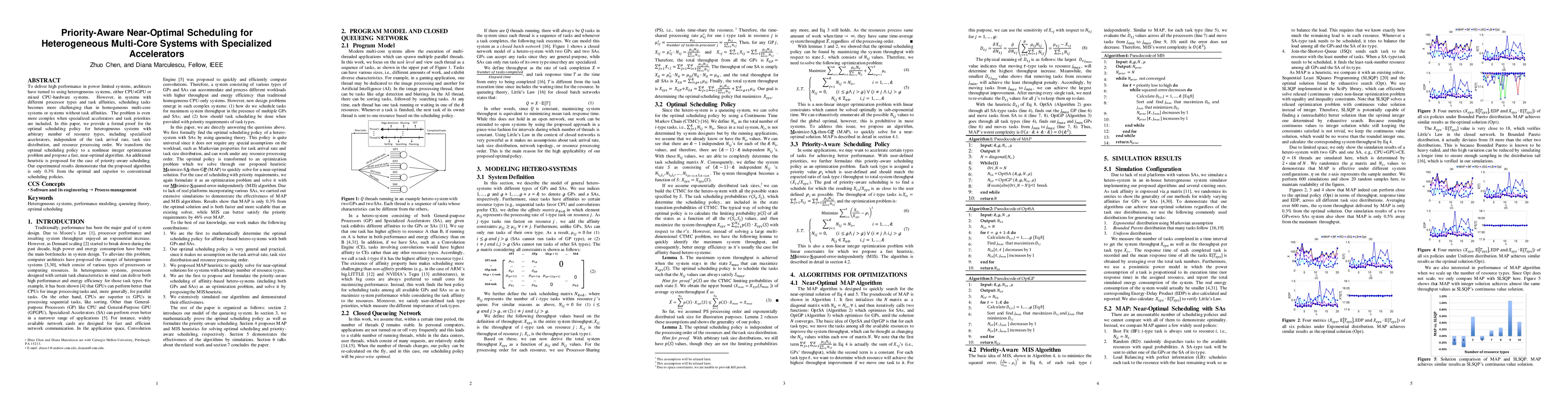 This paper presents a near-optimal scheduling algorithm for heterogeneous multi-core systems with specialized accelerators, addressing the complexity of task scheduling in power-limited environments. The proposed algorithm is shown to be only 0.3% from the optimal and outperforms conventional methods.