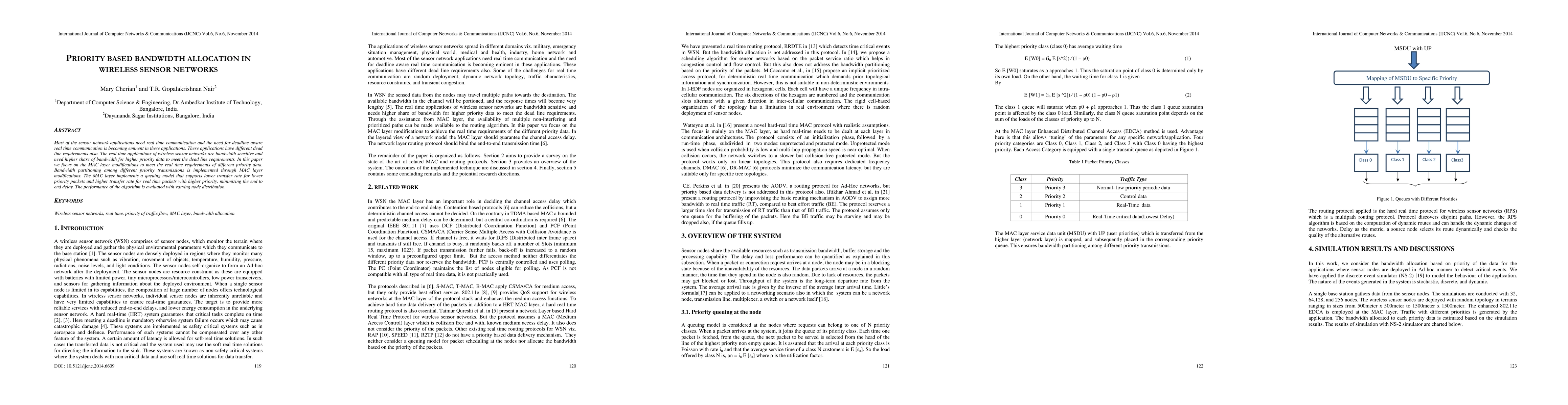 This paper proposes MAC layer modifications for wireless sensor networks to prioritize bandwidth allocation for real-time, deadline-aware applications. It implements a queuing model that assigns higher transfer rates to higher priority packets, minimizing end-to-end delay, and evaluates performance across varying node distributions.