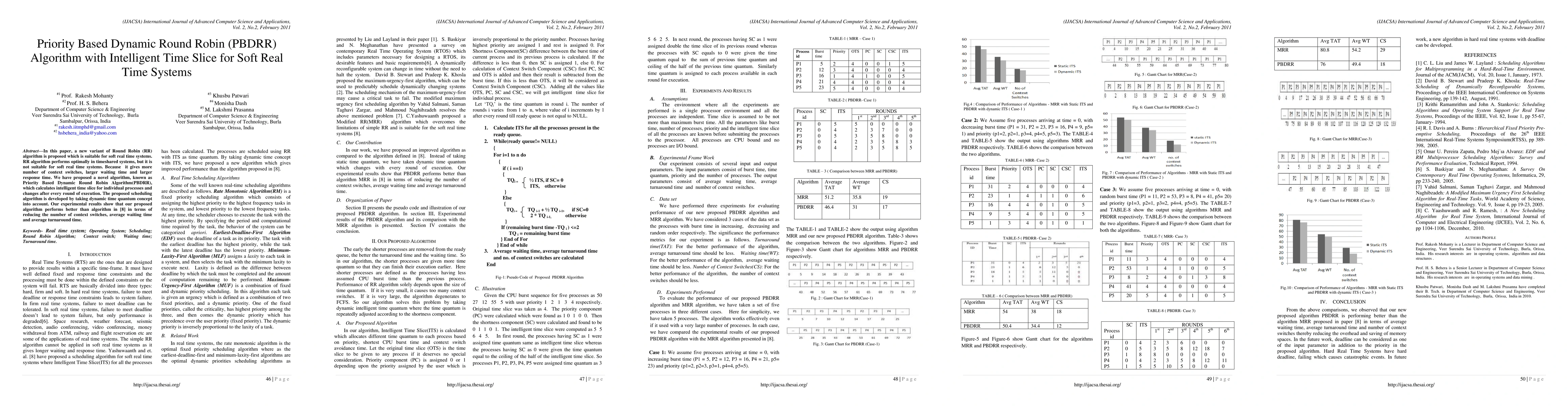 The paper proposes a Priority Based Dynamic Round Robin (PBDRR) algorithm for soft real-time systems, which dynamically adjusts time slices to reduce context switches, waiting time, and turnaround time, outperforming existing algorithms. Experimental results demonstrate improved performance metrics compared to traditional Round Robin scheduling.
