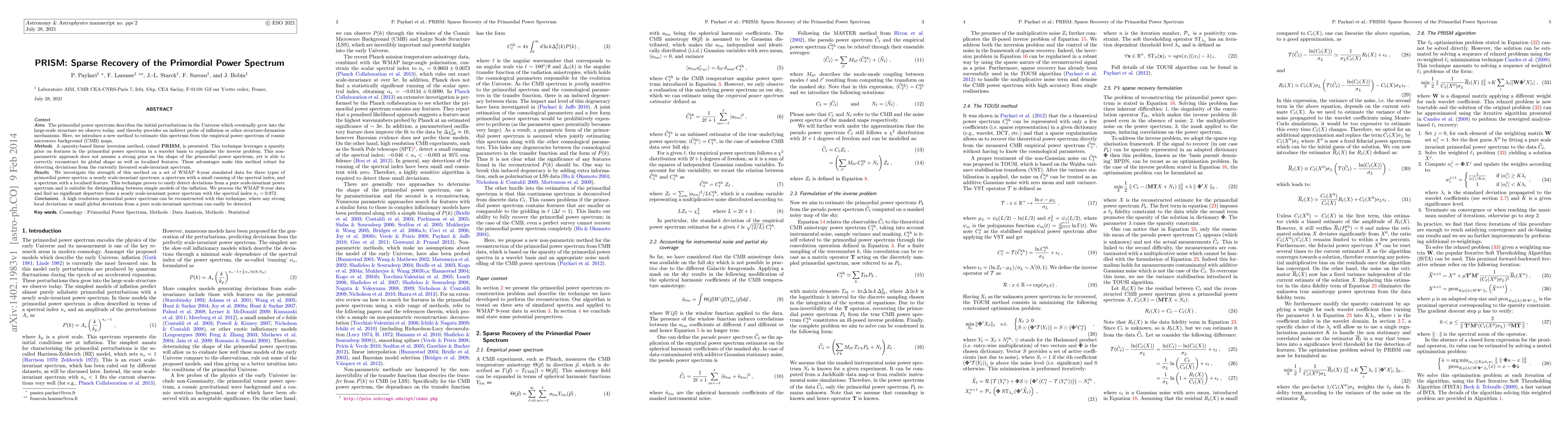 PRISM introduces a sparsity-based linear inversion method for estimating the primordial power spectrum from CMB maps, leveraging wavelet basis to regularize the inverse problem. The method successfully detects deviations from a scale-invariant spectrum and distinguishes between inflation models, though no significant deviations were found in WMAP 9-year data.