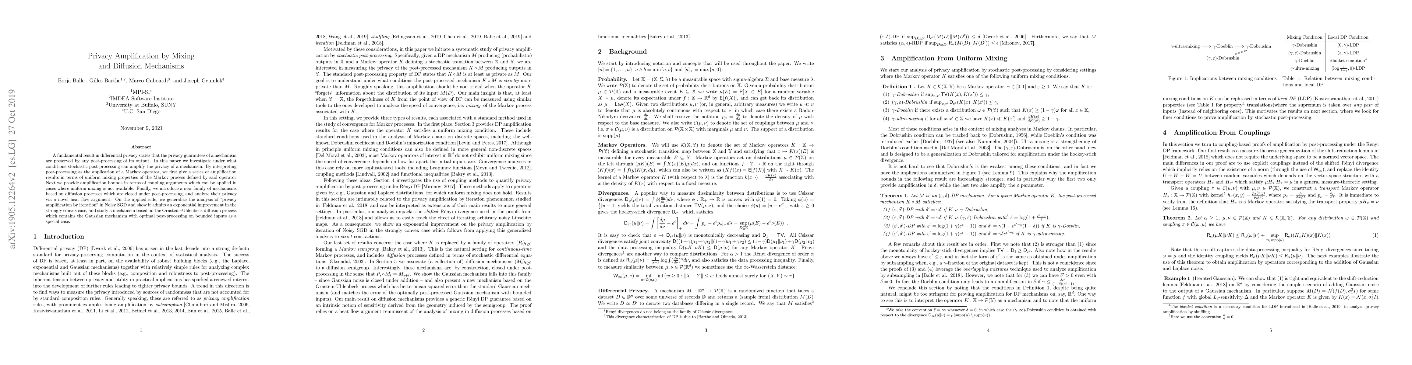 A fundamental result in differential privacy states that the privacy guarantees of a mechanism are preserved by any post-processing of its output. In this paper we investigate under what conditions stochastic post-processing can amplify the privacy of a mechanism. By interpreting post-processing as the application of a Markov operator, we first give a series of amplification results in terms of uniform mixing properties of the Markov process defined by said operator. Next we provide amplification bounds in terms of coupling arguments which can be applied in cases where uniform mixing is not available. Finally, we introduce a new family of mechanisms based on diffusion processes which are closed under post-processing, and analyze their privacy via a novel heat flow argument. On the applied side, we generalize the analysis of "privacy amplification by iteration" in Noisy SGD and show it admits an exponential improvement in the strongly convex case, and study a mechanism based on the Ornstein-Uhlenbeck diffusion process which contains the Gaussian mechanism with optimal post-processing on bounded inputs as a special case.