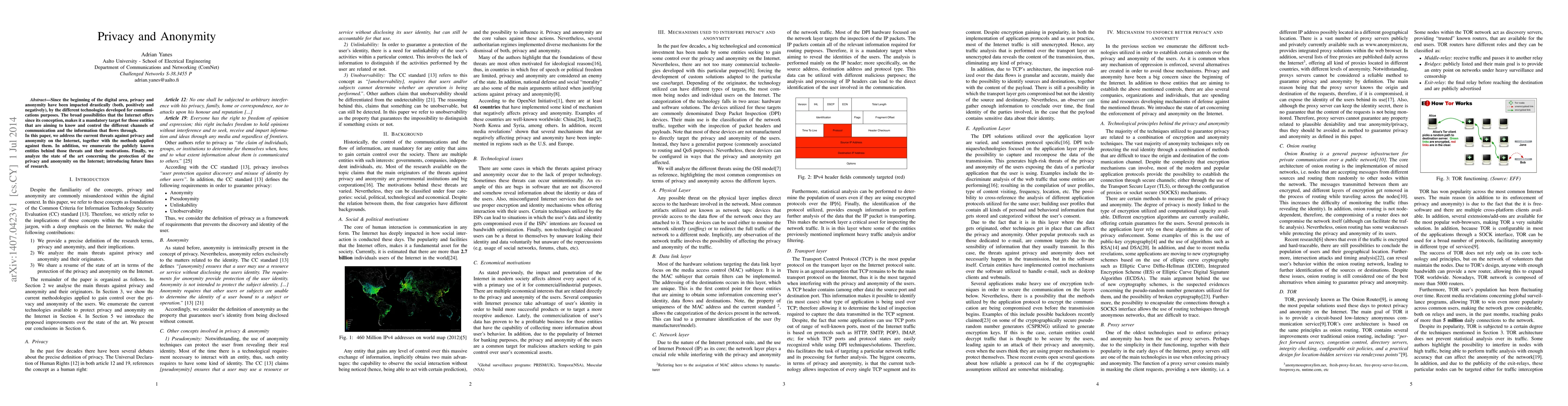 This paper examines the evolving threats to privacy and anonymity on the Internet, detailing the methods used to undermine them and identifying the entities behind these threats. It also reviews current state-of-the-art protection methods and proposes future research directions.