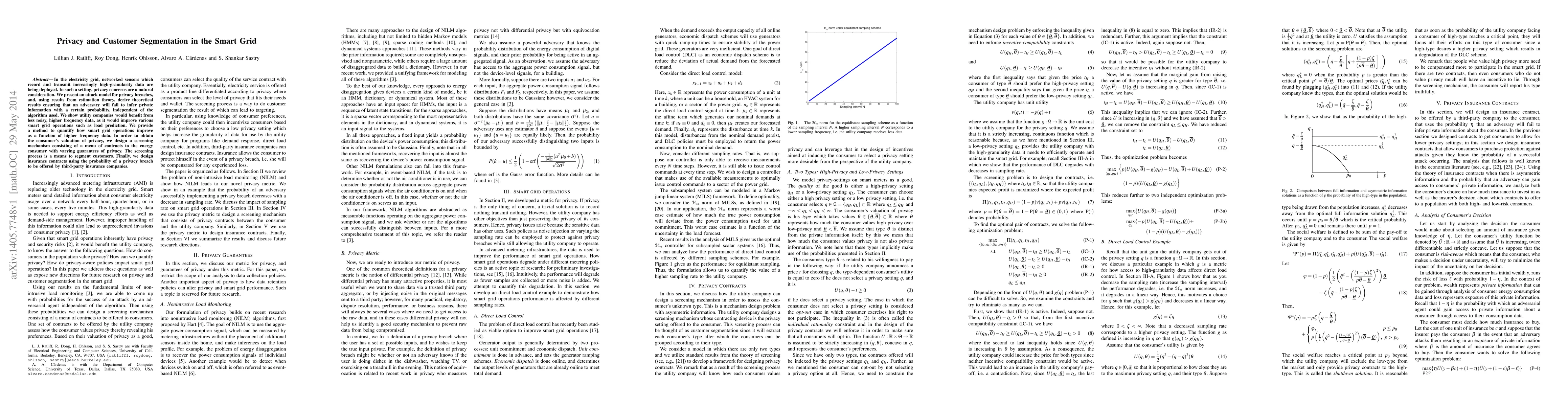 This paper explores privacy concerns in smart grid data collection, presenting an attack model for privacy breaches and theoretical results ensuring adversaries cannot infer private information. It also proposes a method to quantify the benefits of higher frequency data for smart grid operations and designs a screening mechanism for customer segmentation based on privacy preferences.
