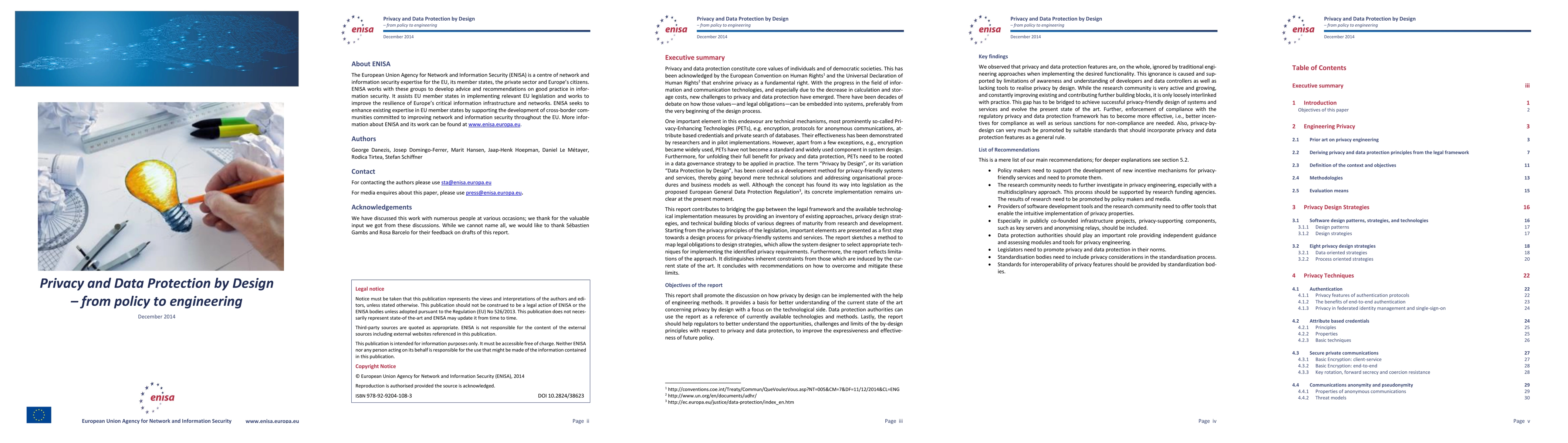 This paper explores embedding privacy and data protection into system design from the outset, detailing existing privacy-enhancing technologies (PETs) and strategies. It proposes a method to align legal privacy principles with design strategies, aiming to bridge the gap between policy and engineering, while acknowledging limitations and offering recommendations for improvement.