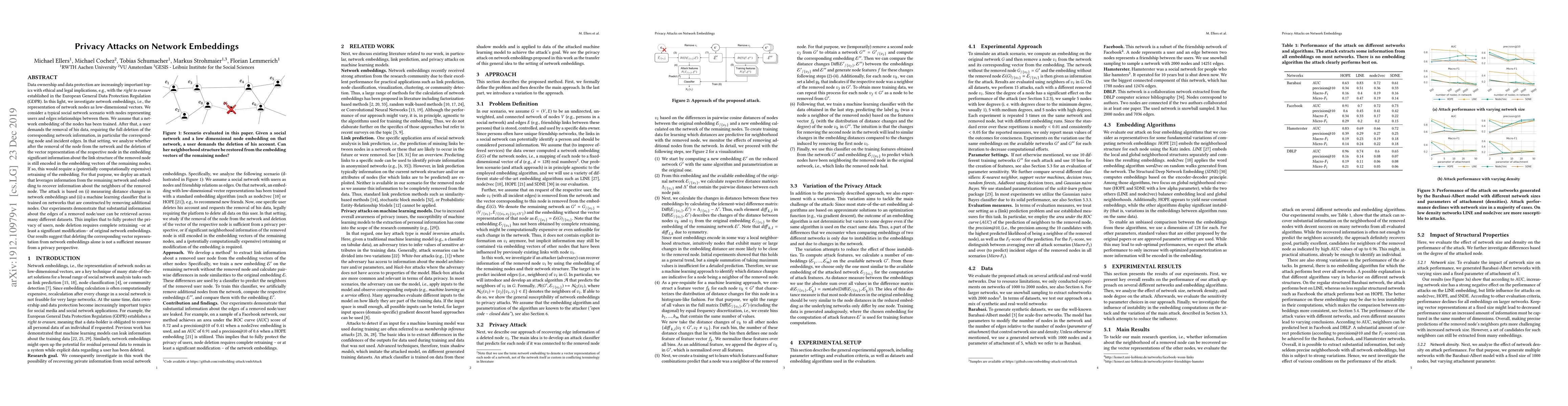 This paper investigates privacy attacks on network embeddings, focusing on the removal of user data from social networks. It demonstrates that significant information about the removed node's connections can still be inferred from the remaining embedding, necessitating a full retraining of the embedding to ensure user privacy.