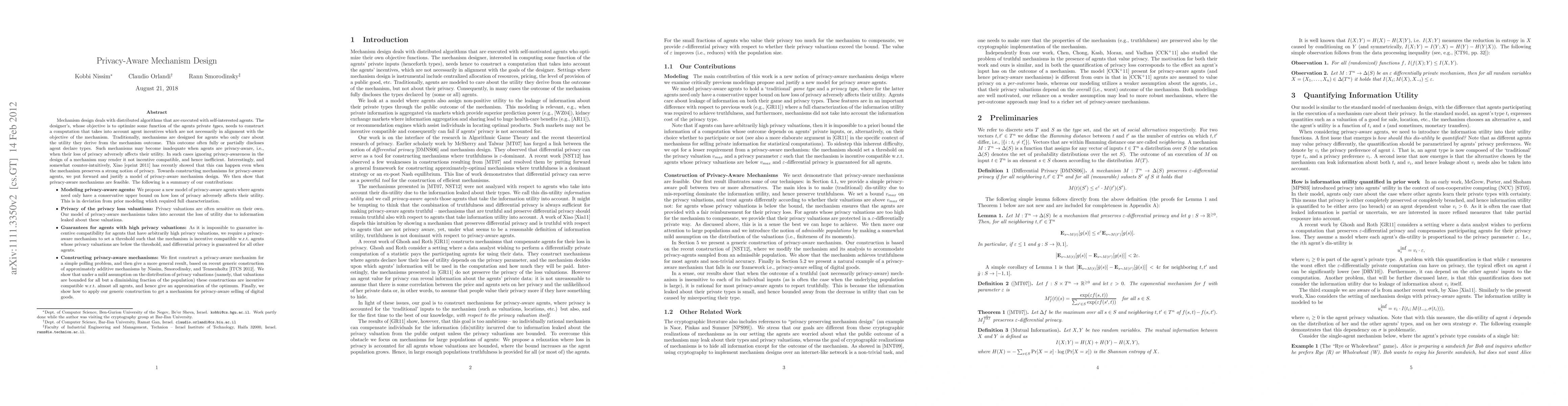This paper introduces a novel model for privacy-aware mechanism design where agents consider both utility and dis-utility from privacy leakage, assuming only an upper bound on privacy loss. It presents a generic construction method for such mechanisms and applies it to electronic polling and digital good pricing.