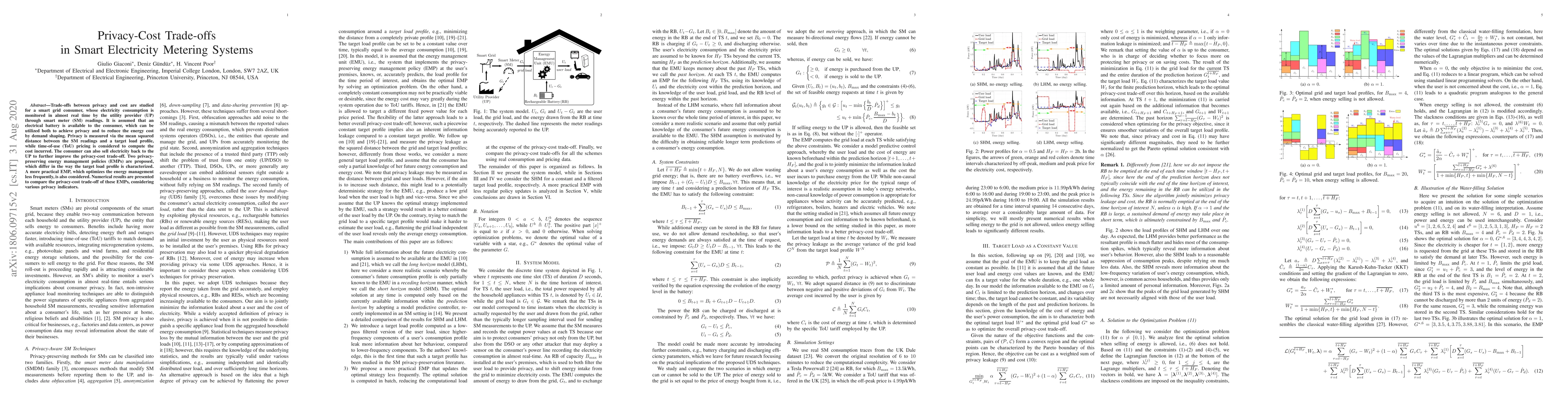 This paper investigates the balance between privacy and cost in smart electricity metering systems, proposing two energy management policies that utilize a consumer's battery to shape demand and enhance privacy. The study evaluates these policies using mean squared distance and time-of-use pricing, and presents numerical results to compare their effectiveness.