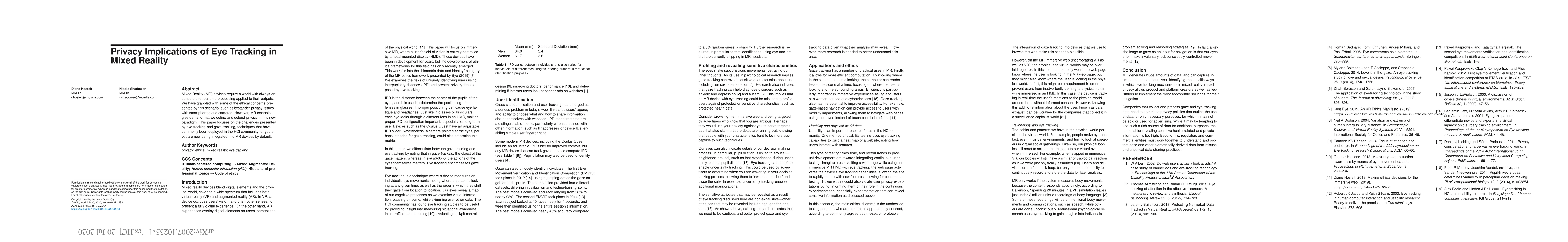 Mixed Reality (MR) devices require a world with always-on sensors and real-time processing applied to their outputs. We have grappled with some of the ethical concerns presented by this scenario, such as bystander privacy issues with smartphones and cameras. However, MR technologies demand that we define and defend privacy in this new paradigm. This paper focuses on the challenges presented by eye tracking and gaze tracking, techniques that have commonly been deployed in the HCI community for years but are now being integrated into MR devices by default.