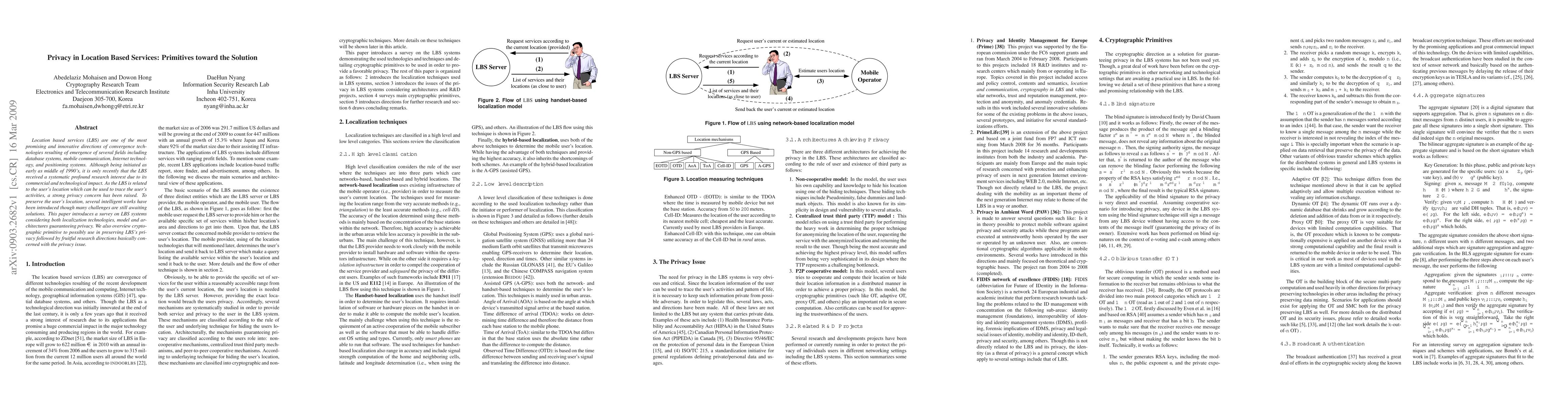 This paper surveys location-based services (LBS) systems, focusing on localization technologies and architectures that ensure privacy. It also discusses cryptographic primitives to enhance LBS privacy and outlines promising research directions addressing these privacy concerns.