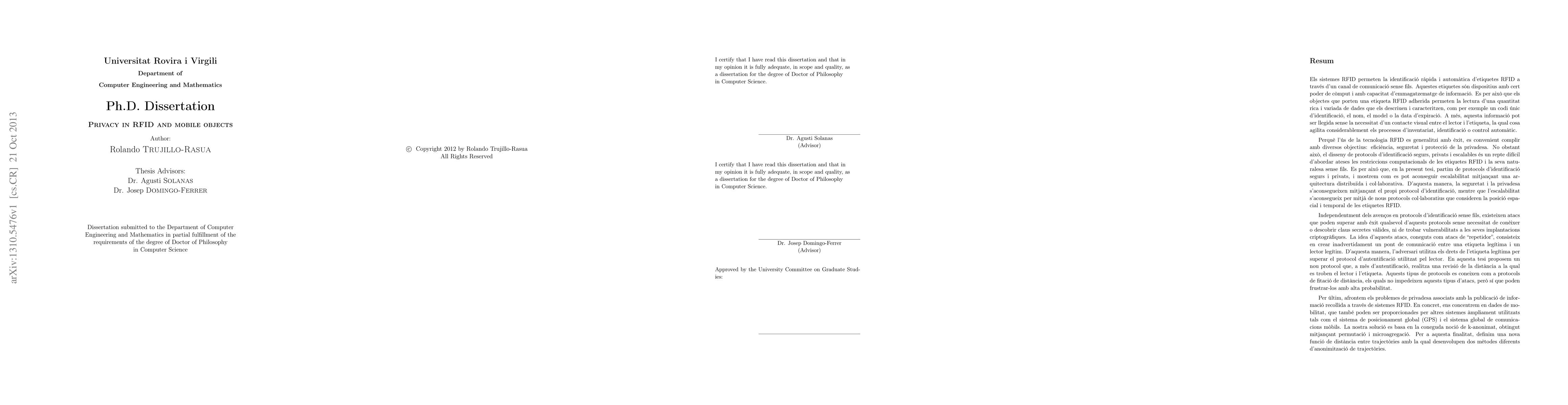 This paper addresses privacy concerns in RFID technology, proposing protocols and heuristics to enhance identification efficiency while maintaining security and privacy. It introduces a low-resource distance-bounding protocol and trajectory anonymisation methods to protect individuals' privacy in the context of RFID tracking data.