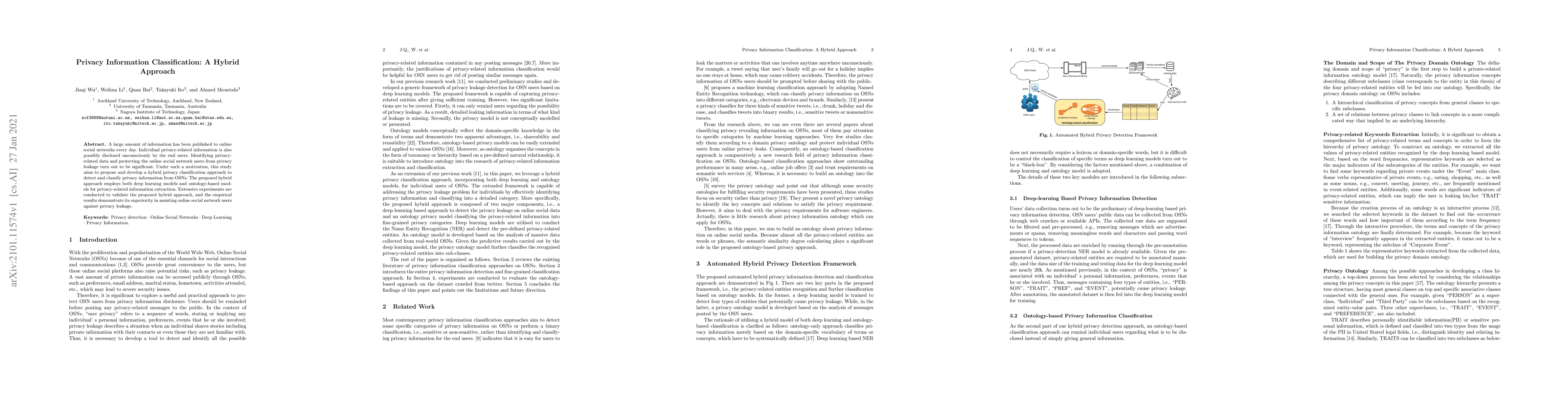 A new approach using a hybrid of deep learning and ontology models to detect and classify privacy information on online social networks has been proposed and proven effective in protecting users from privacy leakage.