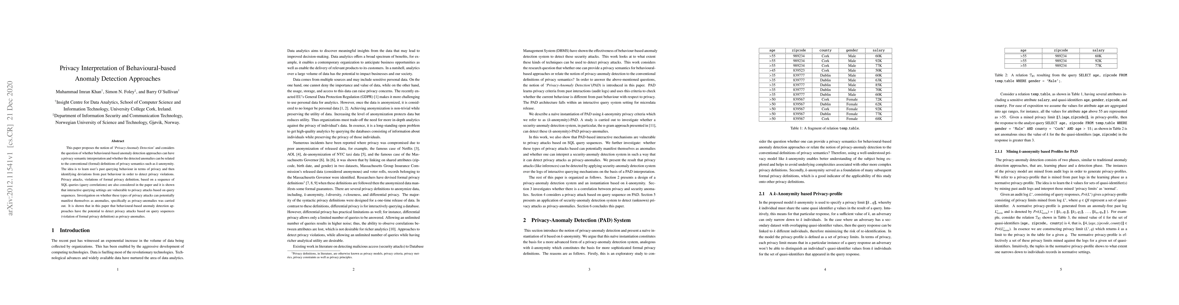 This paper introduces 'Privacy-Anomaly Detection' to assess if behavioural-based anomaly detection can interpret privacy semantically and relate detected anomalies to formal privacy definitions like k-anonymity. It demonstrates that these approaches can identify privacy violations and attacks based on query sequences as privacy-anomalies.