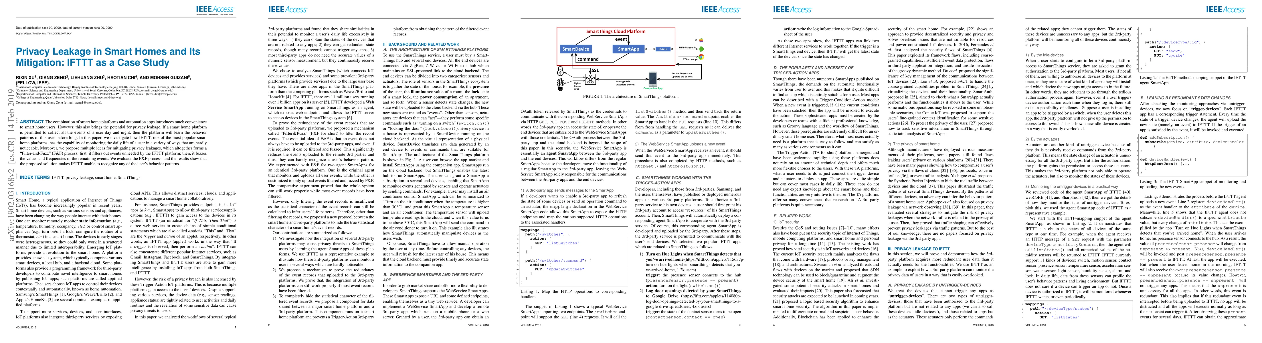 This paper examines privacy leakage in smart homes using IFTTT as a case study, revealing how the platform can subtly monitor user behavior. It proposes a Filter-and-Fuzz (F&F) process to mitigate these risks, demonstrating its effectiveness in preventing IFTTT from recognizing user behavior patterns.