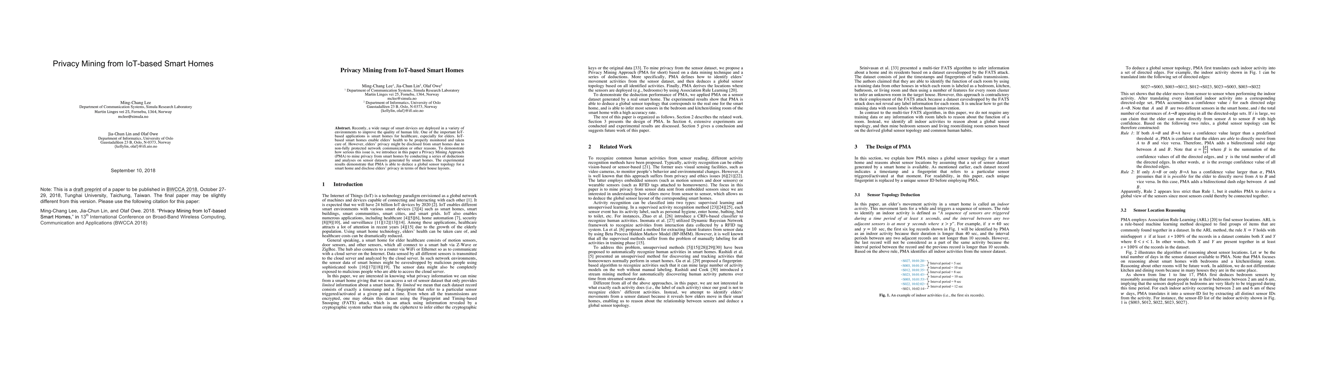 This paper introduces a Privacy Mining Approach (PMA) to analyze sensor datasets from IoT-based smart homes, revealing how such systems can inadvertently disclose elders' privacy, including their house layouts, through unprotected network communication. Experimental results show PMA's efficacy in deducing global sensor topologies.