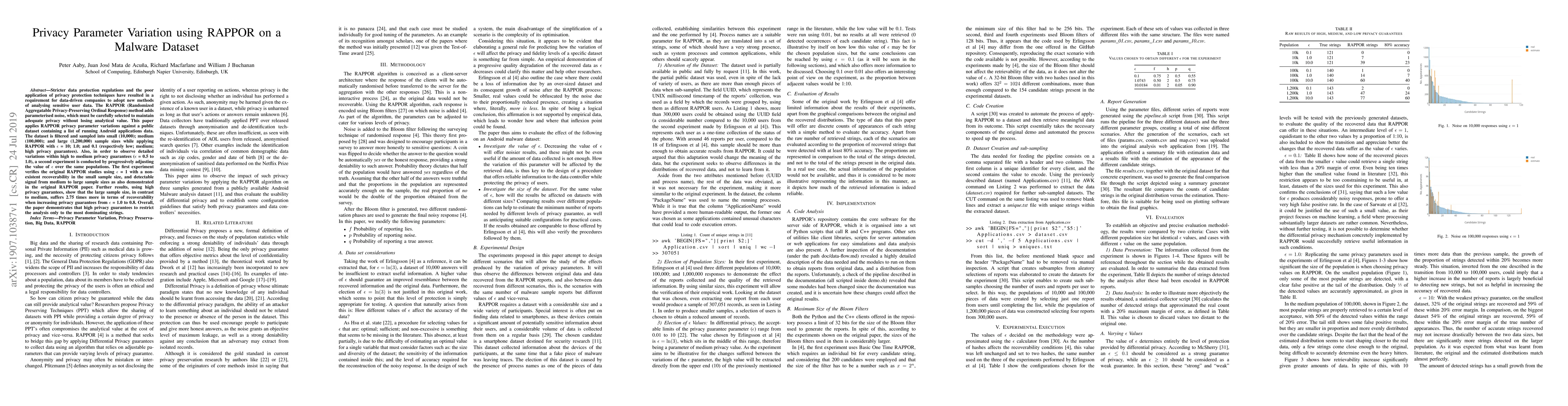 This paper investigates the application of RAPPOR to a malware dataset with varying privacy parameters to balance data protection and analytical utility. Experiments with different sample sizes and privacy levels reveal the trade-offs between privacy and data accuracy.