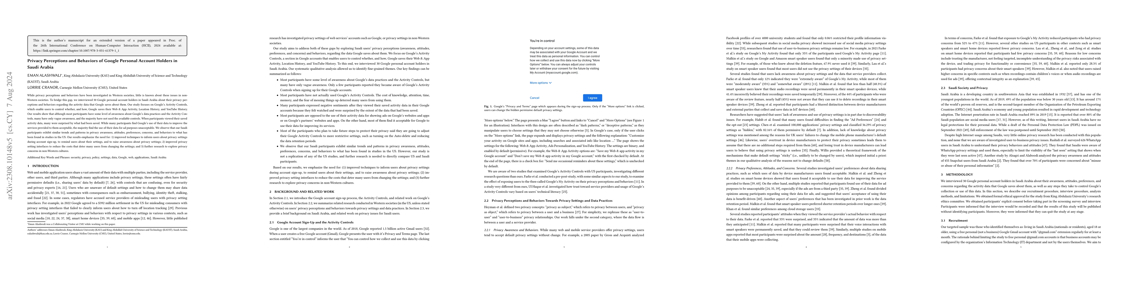 This study explores privacy perceptions and behaviors of Google personal account holders in Saudi Arabia, finding that while many users are somewhat aware of Google's data practices, most have not actively used the available Activity Controls. Participants expressed concerns over ad-related data usage despite some acceptance of data use for service improvement, highlighting a need for better privacy education and improved settings interfaces.