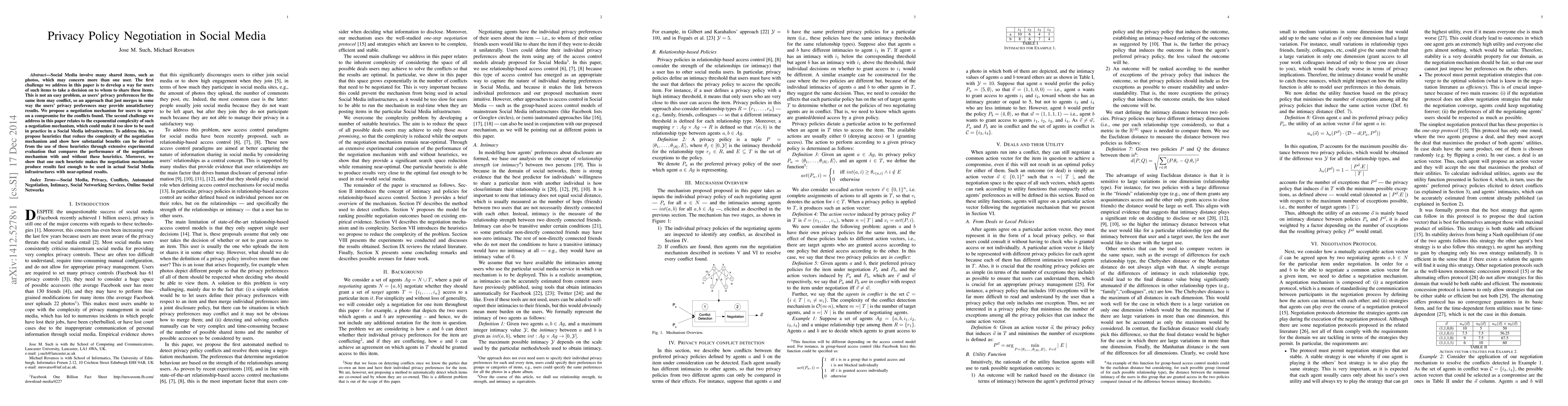 This research paper proposes a negotiation mechanism for users to agree on compromises when their privacy preferences conflict in social media, using heuristics to reduce complexity and achieve near-optimal results.