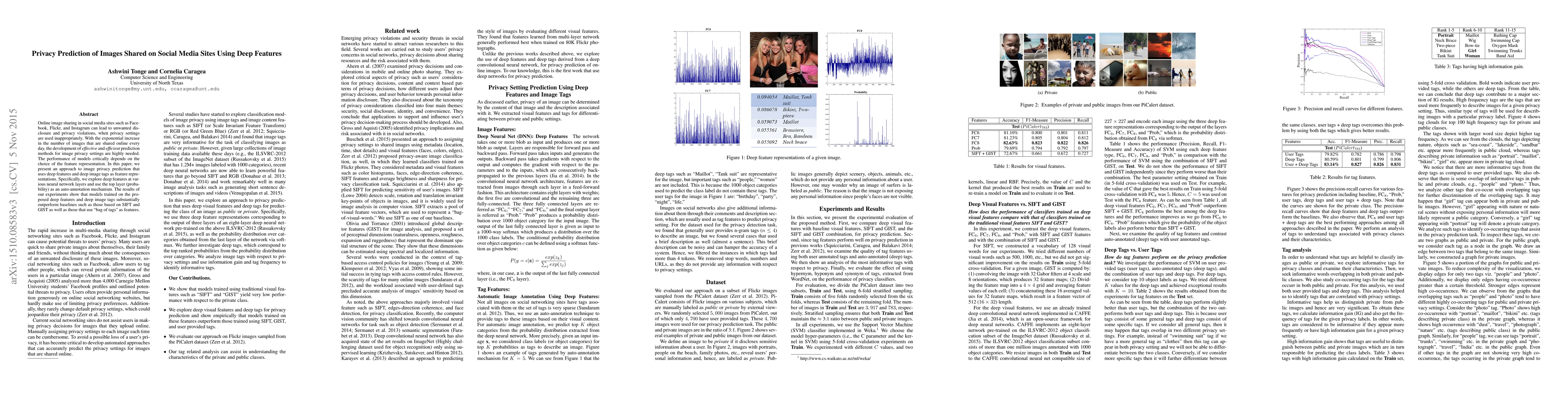 This paper proposes a method for predicting image privacy settings on social media using deep features extracted from neural networks. The approach leverages deep features and deep image tags, showing superior performance compared to baseline methods based on traditional features like SIFT and GIST.