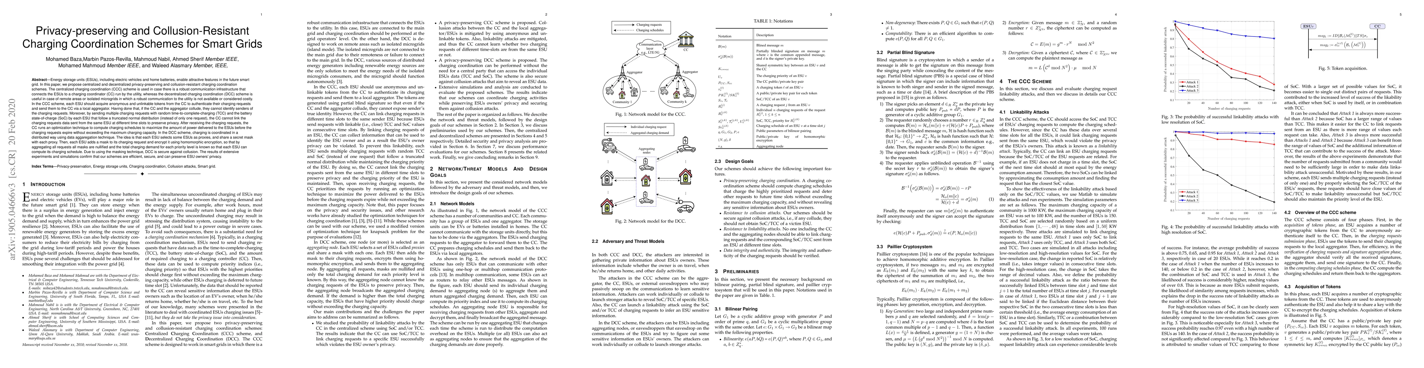 The paper proposes privacy-preserving and collusion-resistant charging coordination schemes for smart grids, utilizing centralized and decentralized approaches. Centralized scheme involves anonymous tokens from a charging controller for coordinating multiple charging requests, while the decentralized scheme allows ESUs to coordinate without an aggregator or CC.
