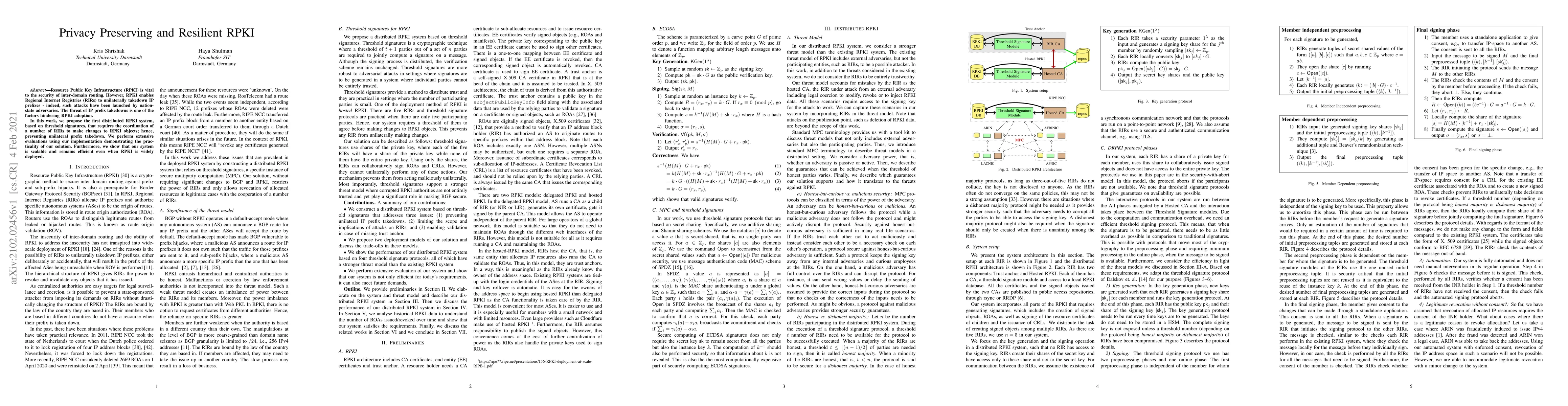 This research introduces a distributed RPKI system using threshold signatures to prevent unilateral IP prefix takedowns by RIRs, enhancing RPKI security and adoption through coordination requirements and demonstrated scalability and efficiency.