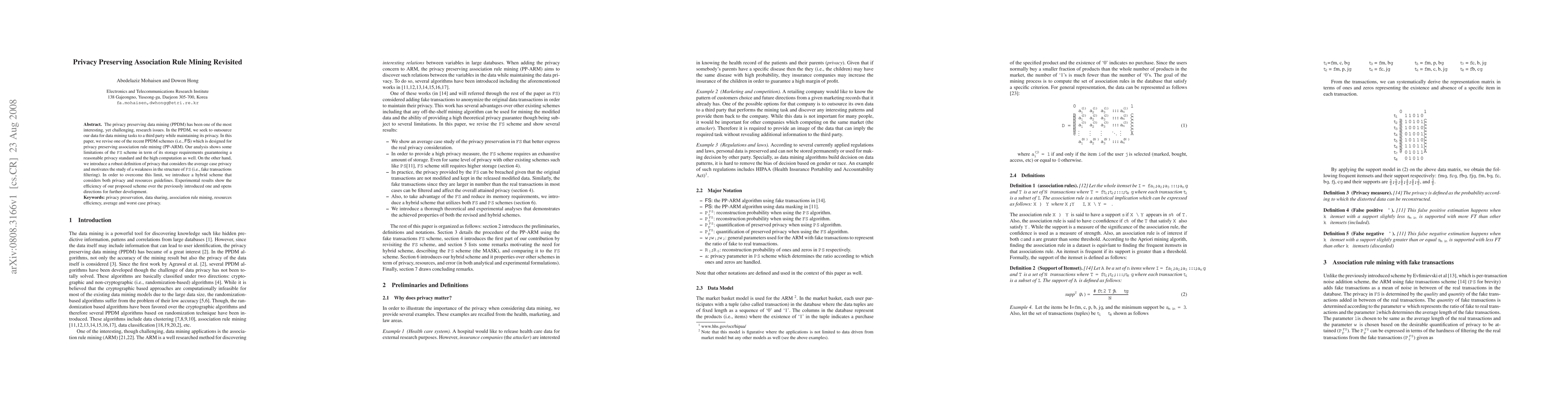 This paper revisits a privacy preserving association rule mining (PP-ARM) scheme, identifying its limitations in storage and computational efficiency. It proposes a hybrid scheme that addresses these issues while maintaining a robust privacy definition, demonstrating improved performance in experiments.