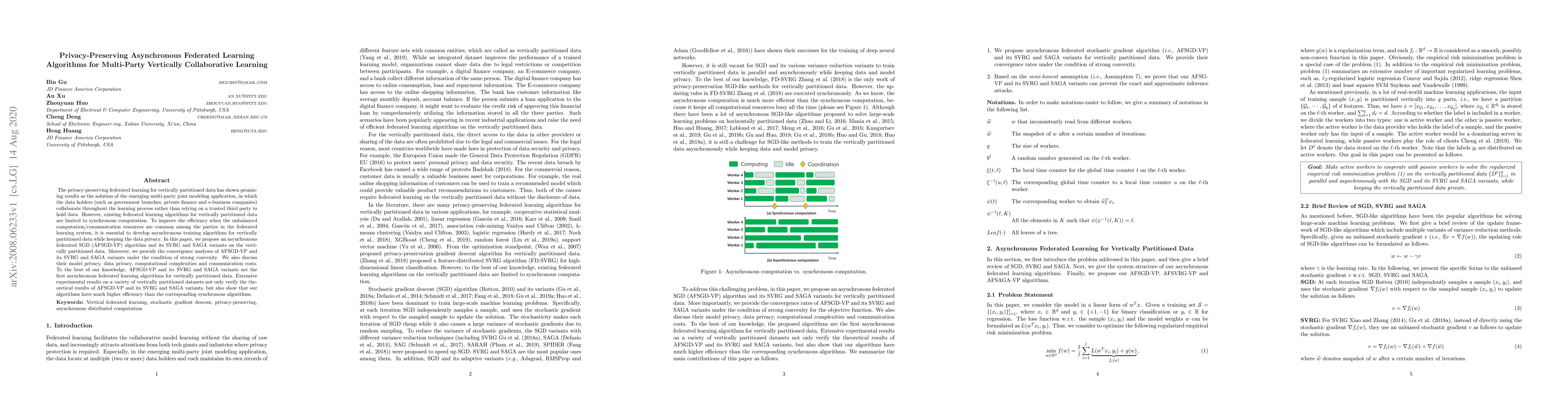 This paper proposes asynchronous federated learning algorithms (AFSGD-VP, SVRG-VP, SAGA-VP) for privacy-preserving multi-party vertical data collaboration, addressing the inefficiency of synchronous methods. The algorithms achieve higher efficiency while maintaining data privacy and are experimentally shown to outperform their synchronous counterparts.