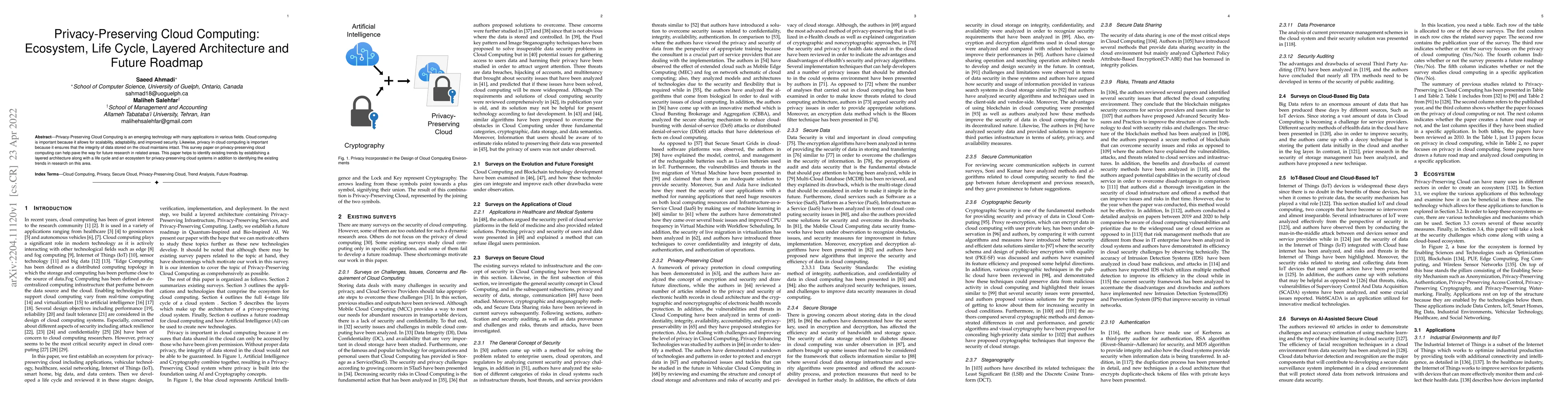 This paper surveys privacy-preserving cloud computing, outlining its ecosystem, life cycle, and layered architecture, while identifying current trends and proposing a future research roadmap. It aims to guide future studies in this emerging field.