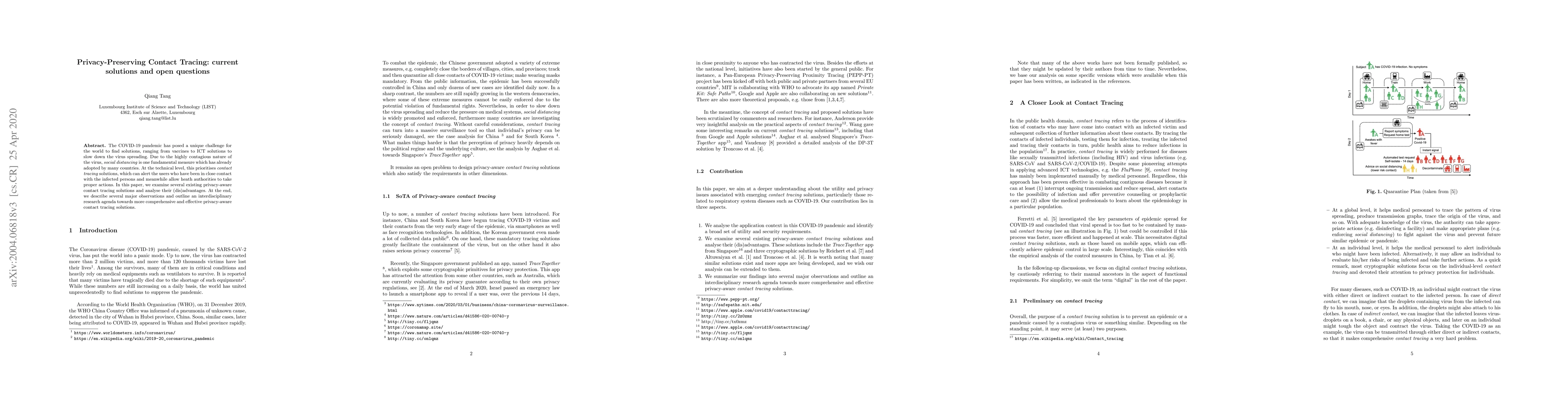The COVID-19 pandemic has posed a unique challenge for the world to find solutions, ranging from vaccines to ICT solutions to slow down the virus spreading. Due to the highly contagious nature of the virus, social distancing is one fundamental measure which has already adopted by many countries. At the technical level, this prioritises contact tracing solutions, which can alert the users who have been in close contact with the infected persons and meanwhile allow heath authorities to take proper actions. In this paper, we examine several existing privacy-aware contact tracing solutions and analyse their (dis)advantages. At the end, we describe several major observations and outline an interdisciplinary research agenda towards more comprehensive and effective privacy-aware contact tracing solutions.