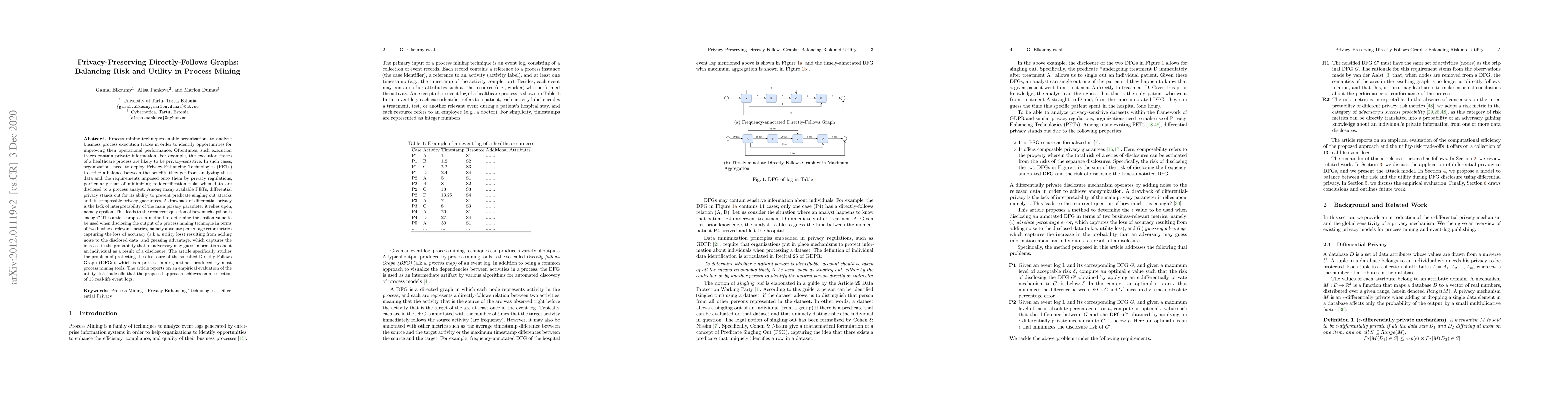 Process mining techniques enable organizations to analyze business process execution traces in order to identify opportunities for improving their operational performance. Oftentimes, such execution traces contain private information. For example, the execution traces of a healthcare process are likely to be privacy-sensitive. In such cases, organizations need to deploy Privacy-Enhancing Technologies (PETs) to strike a balance between the benefits they get from analyzing these data and the requirements imposed onto them by privacy regulations, particularly that of minimizing re-identification risks when data are disclosed to a process analyst. Among many available PETs, differential privacy stands out for its ability to prevent predicate singling out attacks and its composable privacy guarantees. A drawback of differential privacy is the lack of interpretability of the main privacy parameter it relies upon, namely epsilon. This leads to the recurrent question of how much epsilon is enough? This article proposes a method to determine the epsilon value to be used when disclosing the output of a process mining technique in terms of two business-relevant metrics, namely absolute percentage error metrics capturing the loss of accuracy (a.k.a. utility loss) resulting from adding noise to the disclosed data, and guessing advantage, which captures the increase in the probability that an adversary may guess information about an individual as a result of a disclosure. The article specifically studies the problem of protecting the disclosure of the so-called Directly-Follows Graph (DFGs), which is a process mining artifact produced by most process mining tools. The article reports on an empirical evaluation of the utility-risk trade-offs that the proposed approach achieves on a collection of 13 real-life event logs.