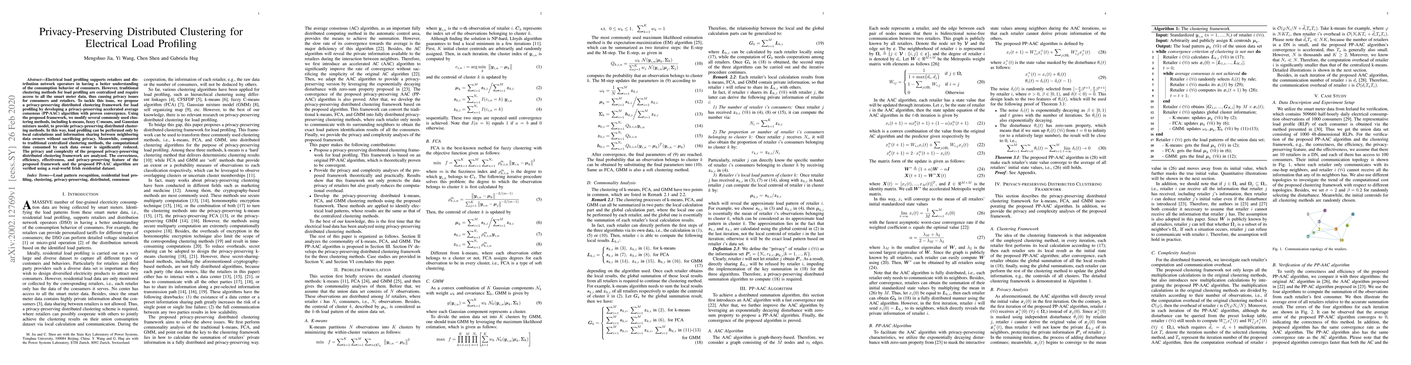 This paper proposes a privacy-preserving distributed clustering framework for electrical load profiling using a novel privacy-preserving accelerated average consensus (PP-AAC) algorithm. The framework enables local calculations and data sharing without compromising privacy, significantly reducing computational time compared to traditional centralized methods.
