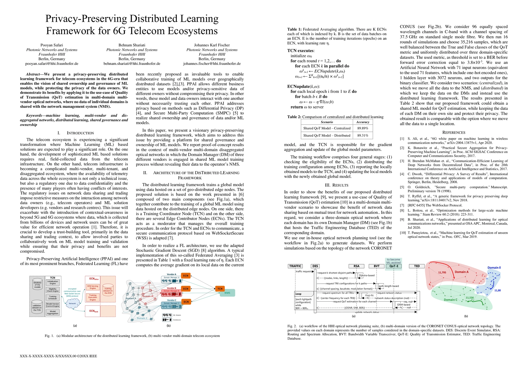 We present a privacy-preserving distributed learning framework for telecom ecosystems in the 6G-era that enables the vision of shared ownership and governance of ML models, while protecting the privacy of the data owners. We demonstrate its benefits by applying it to the use-case of Quality of Transmission (QoT) estimation in multi-domain multi-vendor optical networks, where no data of individual domains is shared with the network management system (NMS).