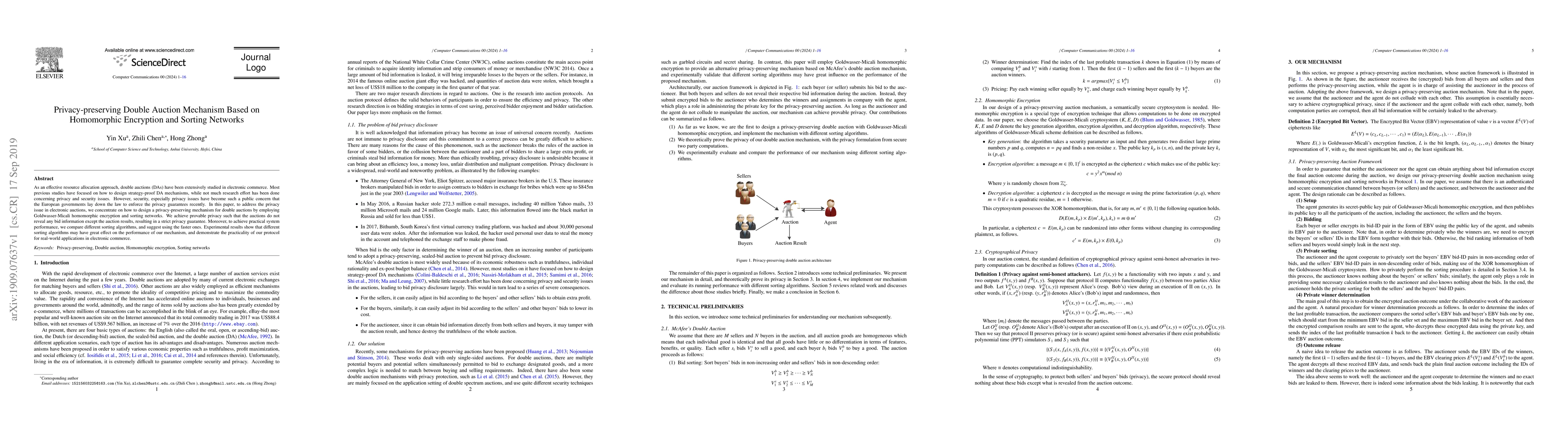 This paper proposes a privacy-preserving double auction mechanism using Goldwasser-Micali homomorphic encryption and sorting networks to ensure strict privacy guarantees without revealing bid information. Experimental results indicate that faster sorting algorithms enhance the practical performance of the mechanism, demonstrating its feasibility for real-world electronic commerce applications.