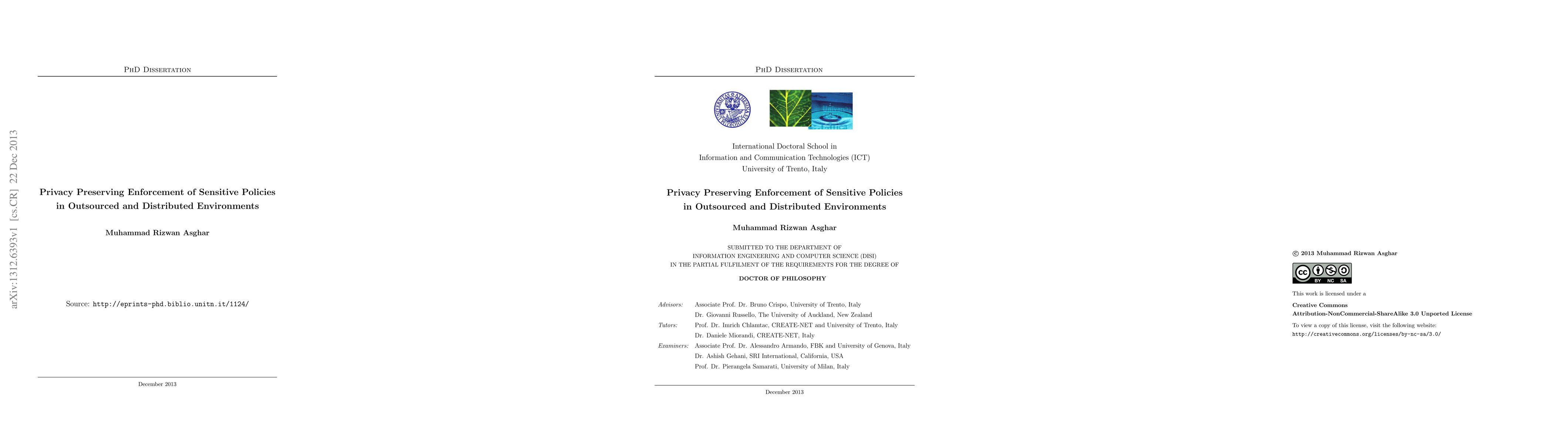 This paper proposes privacy-preserving access control mechanisms for enforcing sensitive policies in untrusted outsourced and distributed environments, such as cloud computing and opportunistic networks. It ensures confidentiality of access policies in cloud settings and protects content privacy in opportunistic networks, while maintaining scalability and performance.
