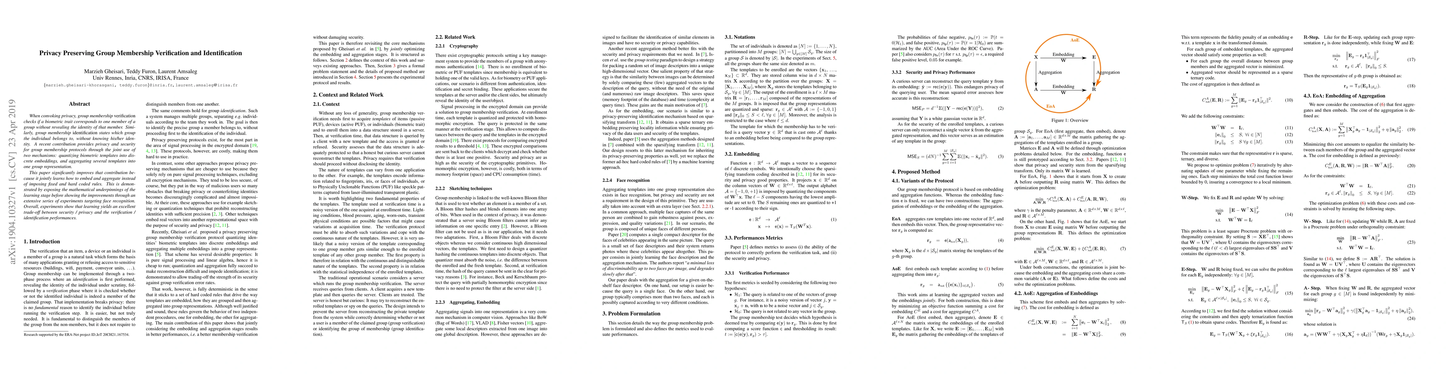 This paper improves privacy-preserving group membership verification and identification through joint learning of embedding and aggregation mechanisms, achieving a better trade-off between security/privacy and performance.