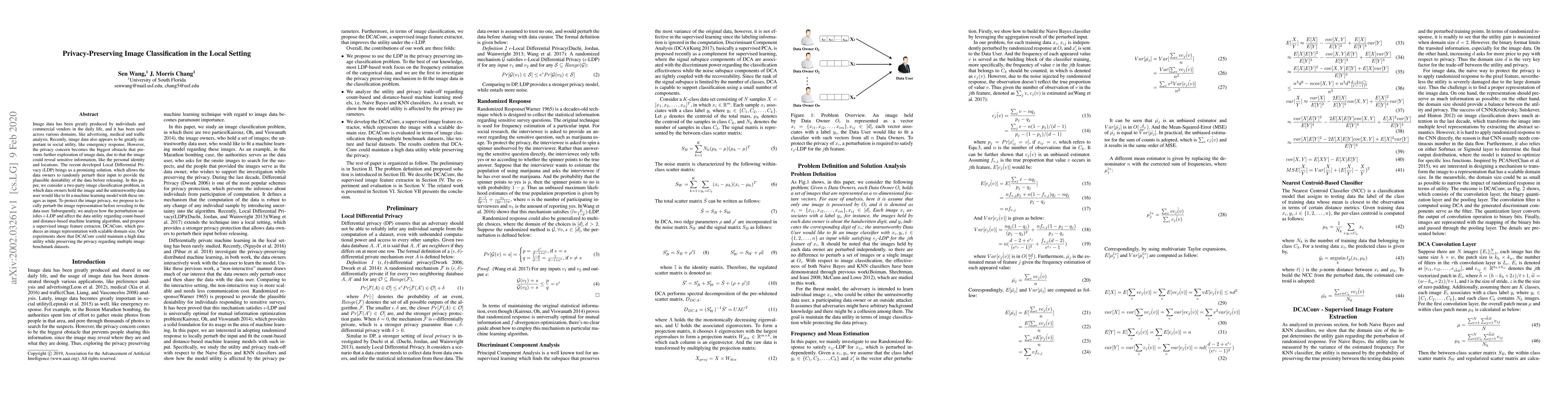 This paper proposes a method for privacy-preserving image classification using Local Differential Privacy (LDP) to perturb image representations before sharing with an untrustworthy data user. The method maintains high data utility while ensuring privacy, as demonstrated through experiments on multiple benchmark datasets.