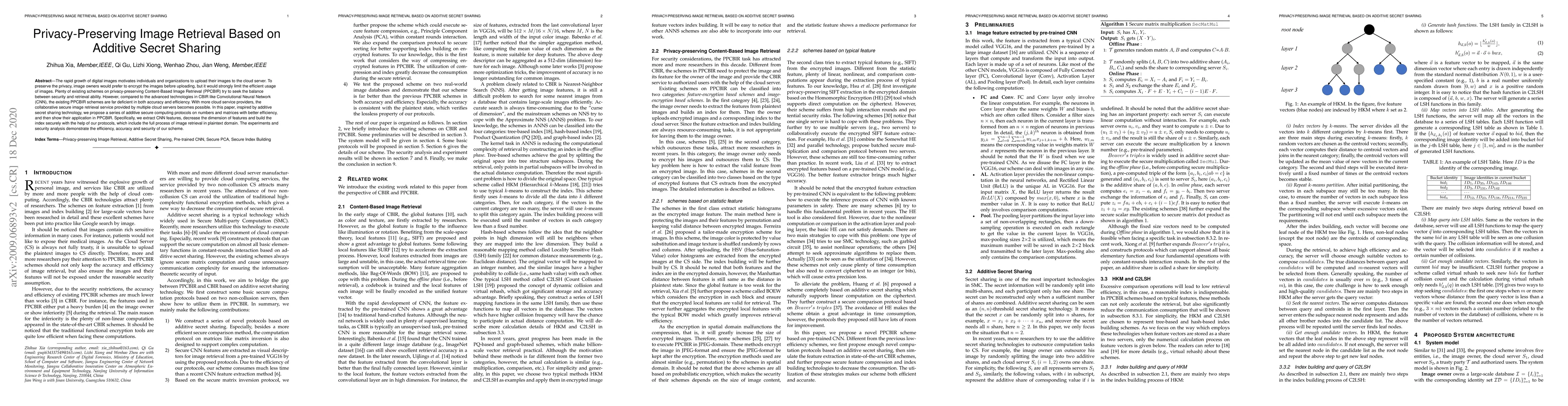 This paper proposes privacy-preserving Content-Based Image Retrieval (PPCBIR) using additive secret sharing to balance security and retrieval efficiency. The method leverages secure computing protocols to extract and index CNN features without compromising privacy, achieving better accuracy and efficiency compared to existing PPCBIR schemes.